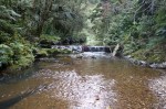 Nach einem Weg, der durch Maori-Land führt und normalerweise von niemand Fremden betreten werden darf (nur TA-Hiker dürfen), steht wieder River Walking an. Dieses Mal geht es ganze vier Kilometer durch den Fluss und es ist relativ kalt, zumal es immer wieder regnet. Nach gut zwei Stunden im Wasser ist das aber auch geschafft. Ein paar Kilometer gibt es eine Hütte, ich schaue nur, ob die Jungs evt dort Pause machen und gehe dann in die andere Richtung weiter. Plötzlich raschelt es am Wegesrand und ein schwarzes Ferkel läuft aufgeregt davon. Dann noch eins und ein helles mit dunklen Flecken…niedlich die kleinen, bin nur froh, dass sie ohne die Mutter spielen gegangen sind.