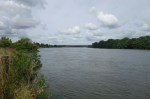 Natürlich geht es den halben Tag auf Straßen aus der Stadt, dann folgen wieder Weiden und ein verkrauteter Uferweg. Da es mittlerweile wieder regnet, bin ich wieder komplett nass und dreckig. Dann reißt auch noch der Hüftgurt, so dass ich den schweren Rucksack jetzt nur noch auf den Schultern trage…argh…