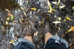 Also weiter…ich bin jetzt schon drei Stunden unterwegs und langsam schwinden meine Kräfte…es sind aber immer noch gut zwei Kilometer… Erst nach 5:20 Stunden erreiche ich fix und fertig den Waldrand und einen Fluss, in welchem ich mich erstmal sauber machen kann, das ist dringend nötig, so wie ich aussehe.