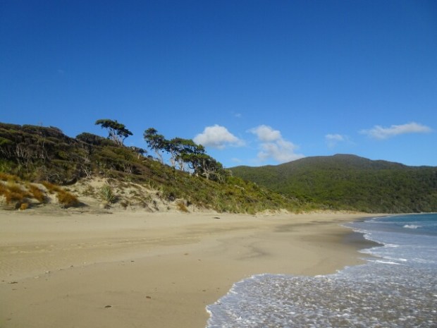 Die nächste Stunde versuchte ich mich dann wieder zu sammeln und das Erlebnis zu verarbeiten…ich humpelte zur Mason Bay Hut und versuchte erfolglos den feinen Sand, der in alle meine Sachen gespült wurde, irgendwie wieder rauszubekommen. Ich hatte jetzt nicht nur keine Kamera und kein Handy mehr, sondern wusste noch nicht einmal wie spät es ist…bis zur Freshwater Hut waren es noch 15 Kilometer – würde ich das noch schaffen? Es müsste jetzt cirka 14 Uhr sein und ich versuchte auf dem Weg einzuschätzen, wie weit ich schon gelaufen war und wie viel Zeit vergangen war…