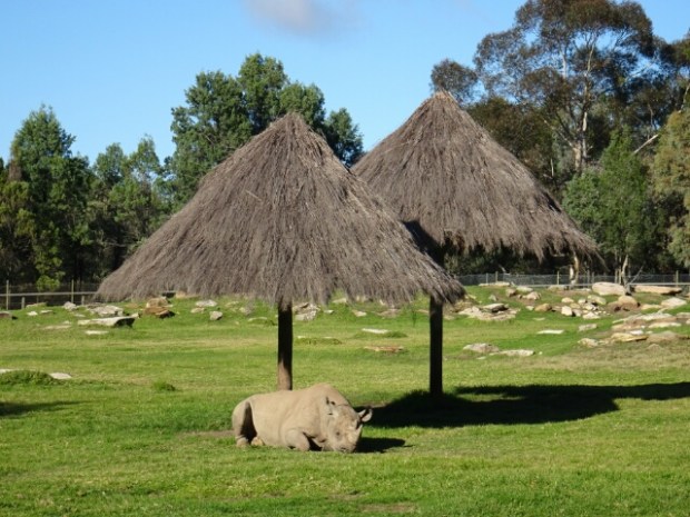 Das Hauptaugenmerk des Taronga Western Plains Zoos lag aber auf dem Schutz und der Vermehrung von Nashörnern. Neben eigenen Nachwuchserfolgen setzt sich der Zoo direkt in den Heimatländern der Tiere für deren Schutz ein. Während ich dem interessanten Vortrag der begeisterten Tierpflegerin lauschte, wurde ich jedoch immer wütender. Grund war das Fehlen jeglicher asiatischer Besucher um mich herum. In Australien stammt der allergrößte Teil der Touristen aus Asien, hauptsächlich China und Korea, wenn ich das richtig mitbekomme. Die sind wirklich überall und lautstark vertreten – außer hier im Zoo. Nicht einen Asiaten sehe ich hier und das ist deshalb so ärgerlich, weil sie sich dann direkt aus erster Hand hätten anhören können, was für ein Irrsinn es ist, Nashörner wegen des Horns zu jagen und töten. Die Chinesen nutzen das Horn doch tatsächlich, wenn sie einen Kater haben!!!