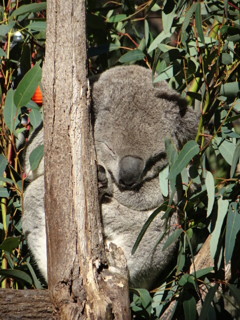 Der Zoo an sich ist aber super und ich verbringe im Grunde den ganzen Tag dort, weil ich am Ende auch noch an einem der Barbecueplätze Essen koche und das kostenfreie WLAN nutze. Und hier macht es auch richtig Spaß, sich die schlafenden Koalas anzusehen. Es gibt ein großes Gehege, durch das man durchlaufen und sich die Wallabys und Kängurus ansehen kann und dort drin gibt es eine Rampe, die nach oben führt, damit man von der Plattform die putzigen Gesellen in den hohen Eukalyptusbäumen besser erkennt. Ich bin mir sicher, dass die hier etwas Schöneres träumen als im Koala Park 😉