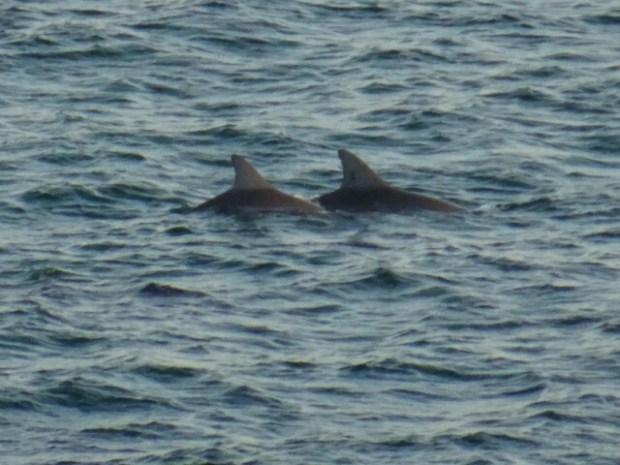 Einmal schaffte ich sogar das Kunststück, die physikalischen Gesetze des Auftriebs auszuhebeln und mit dem gesamten Brett vornüber unterzutauchen und die Welle einfach über mich rüberrollen zu lassen…nachdem ich das Wasser größtenteils aus Mund und Nase entfernt hatte, tröstete ich mich damit, dass so wenigstens die Delphine, die etwas weiter hinten manchmal aus den Wellen sprangen, ihren Spaß hatten.
