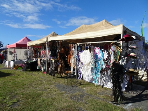 Den Sonntag verbrachte ich überwiegend mit Nichtstun oder Essen…nur vormittags besuchte ich den Kunstmarkt, der einmal im Monat hier stattfindet. Dort herrschte eine wirklich tolle, entspannte Stimmung. Das war auch einer der wenigen Märkte, wo kein Krimskrams und Trödel angeboten wurde, sondern ausschließlich Handwerkskunst oder das, was die Anbieter eben für Kunst und/oder Schön erachteten. Dabei stand das Marktangebot hauptsächlich unter einem holistischen Motto und von veganem Essen und fairem Kaffee über Räucherstäbchen, Traumfänger, Yogahosen und andere naturbelassene Kleidung bis hin zu kleinen Schemeln, die das richtige Sitzen beim Sonnenanbeten (oder ähnlichem) ermöglichen sollen, gab es hier alles, was das entspannte, friedfertige Herz begehrte.