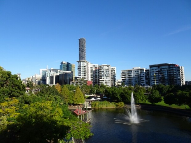 Brisbane ist insofern eine schöne Stadt, als dass sich der Brisbane River wie eine Schlange durch die Stadt windet. Entsprechend viele Brücken gibt es, die mich mehr als einmal verzweifeln lassen, auf der Suche nach dem richtigen Weg. Und die Stadt scheint sehr fahrradfreundlich zu sein. Überall gibt es breite Fahrradwege oder sogar extra Spuren für die Radler und in dem Park, in welchem ich während meines Aufenthalts übernachte, drehen schon morgens ab fünf Uhr die ersten Gruppen mit ihren Rennrädern ihre Runden auf dem Radrundweg. Die Innenstadt Brisbanes ist klein und übersichtlich. Bereits am ersten Tag schaffe ich es sehr gemütlich, mir alles Wichtige anzusehen und noch eine Runde durch den botanischen Garten zu drehen. Trotzdem bleibe ich ganze vier Tage in der Stadt, weil ich auf die Geburtstagspost meiner Eltern warte – die letztendlich leider nicht ankommt und verloren gegangen sein muss, da sie auch zwei Wochen später, als ich nochmal anrufe, nicht da ist.