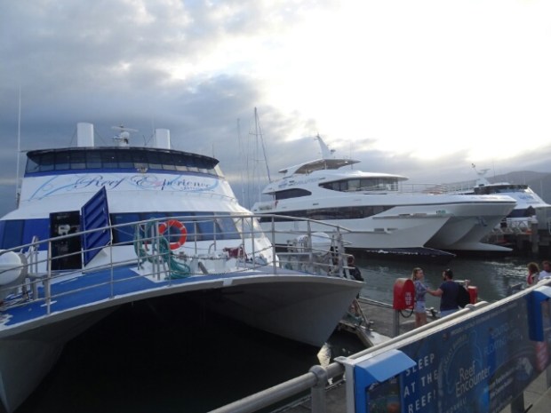 Pünktlich und aufgeregt stehe ich am nächsten Morgen also am Pier von Cairns und bestaune den großen Katamaran, mit welchem wir unterwegs sein werden.
