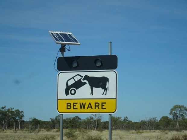 In der nächsten kleinen Ortschaft tankte ich nochmal und dann war ich auch schon im Outback. Auf den nächsten knapp 1.900 Kilometern würde ich bis auf zwei kleine Ortschaften, die noch auf dem Weg liegen, nur noch endlose Weiten mehr oder weniger spärlich bewachsen mit Eukalyptusbäumen, verschiedenen Gräsern und anderen wüstentauglichen Pflanzen sehen. Dazu jede Menge totgefahrener Kängurus am Straßenrand. Als ich in der Abenddämmerung auch auf lebende Exemplare stoße, wird mir aber auch klar, warum es so viele nicht schaffen…wenn ein Auto oder Laster angebraust kommt, hüpfen die Viecher einfach in die Richtung, in die sie gerade gucken. Im Zweifel also einmal quer über die Straße, obwohl sie am Straßenrand sicher waren und sich nur umdrehen müssten…in die Top Ten der intelligentesten Tiere schaffen es Kängurus wohl eher nicht mehr…