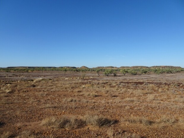 Am nächsten Tag steht nur Fahren auf dem Programm und ich hoffe, dass ich heute mehr schaffe als gestern. Durchs Outback zu fahren ist meistens nicht so aufregend. Die Straße führt durch immer gleich aussehende Gegenden, die von niedrigen Eukalyptusbäumen und trockenem Gras bestimmt werden. Manchmal taucht am Horizont ein niedriger Höhenzug auf oder ein paar Greifvögel kreisen über einem Kängurukadaver und warten bis man vorbeigefahren ist und sie weiterfressen können. Die Straße ist zwar nicht schnurgerade, aber die Kurven sind so dezent, dass man nicht abbremsen muss. Ich vertreibe mir die Zeit, indem ich Podcasts höre.