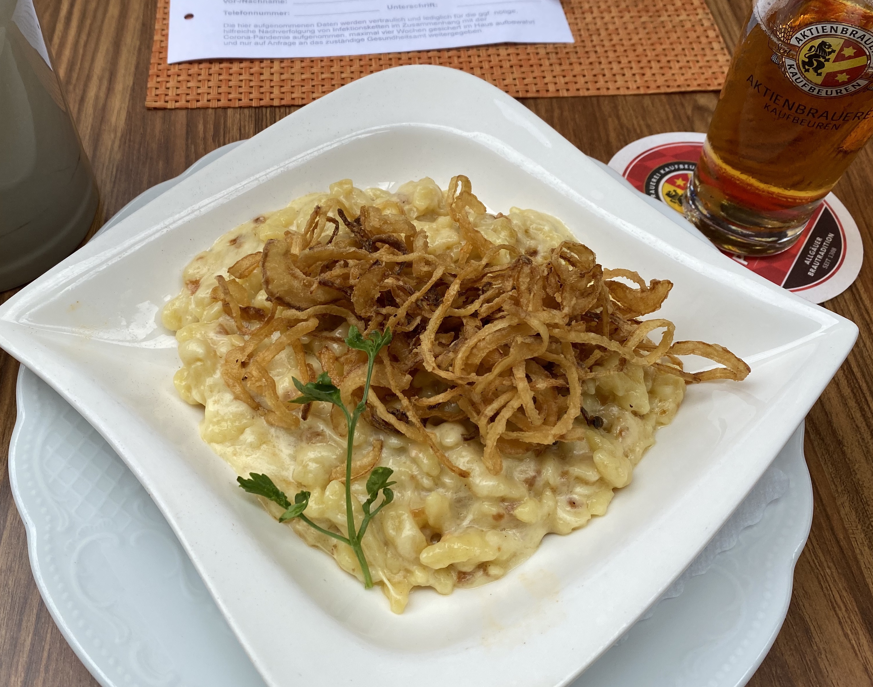 Doch bevor es richtig losgehen kann, muss ich natürlich erstmal was Essen 🙂 Ich kehre in einem urigen Gasthaus ein (sitze natürlich im Biergarten) und lasse mir Käsespätzl schmecken. Das ist genau die große Portion Kohlenhydrate, die ich jetzt gebrauchen kann.