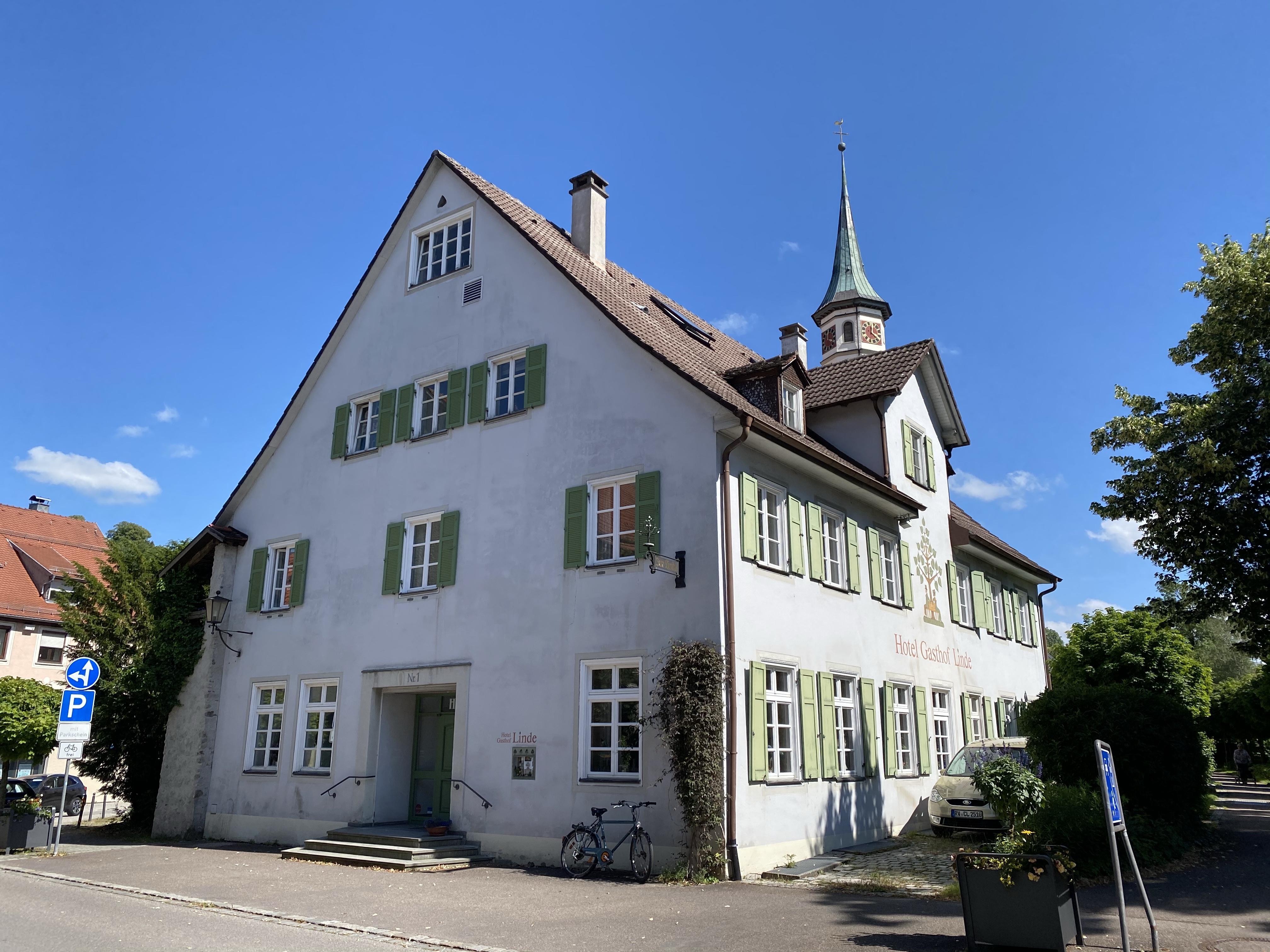 Ich bin heute – wie gestern Abend spontan entschieden – in einer Pension eingekehrt, allerdings nicht die, die ich über ein Onlineportal reserviert hatte. Als ich nämlich gegen 12:00 Uhr in Leutkirch ankam und nachgesehen habe, ab wann ich einchecken kann, musste ich lesen, dass das erst ab 17:00 Uhr möglich war! Was soll das denn bitte?!? Erstens würde ich dann noch fünf Stunden in meinem nicht ganz frischen Zustand im Ort verbringen müssen und zweitens hätte ich dann gar nicht genug Zeit für all die Dinge, wegen derer ich überhaupt einkehre! Wäsche waschen und trocknen und Füße hochlegen nämlich.