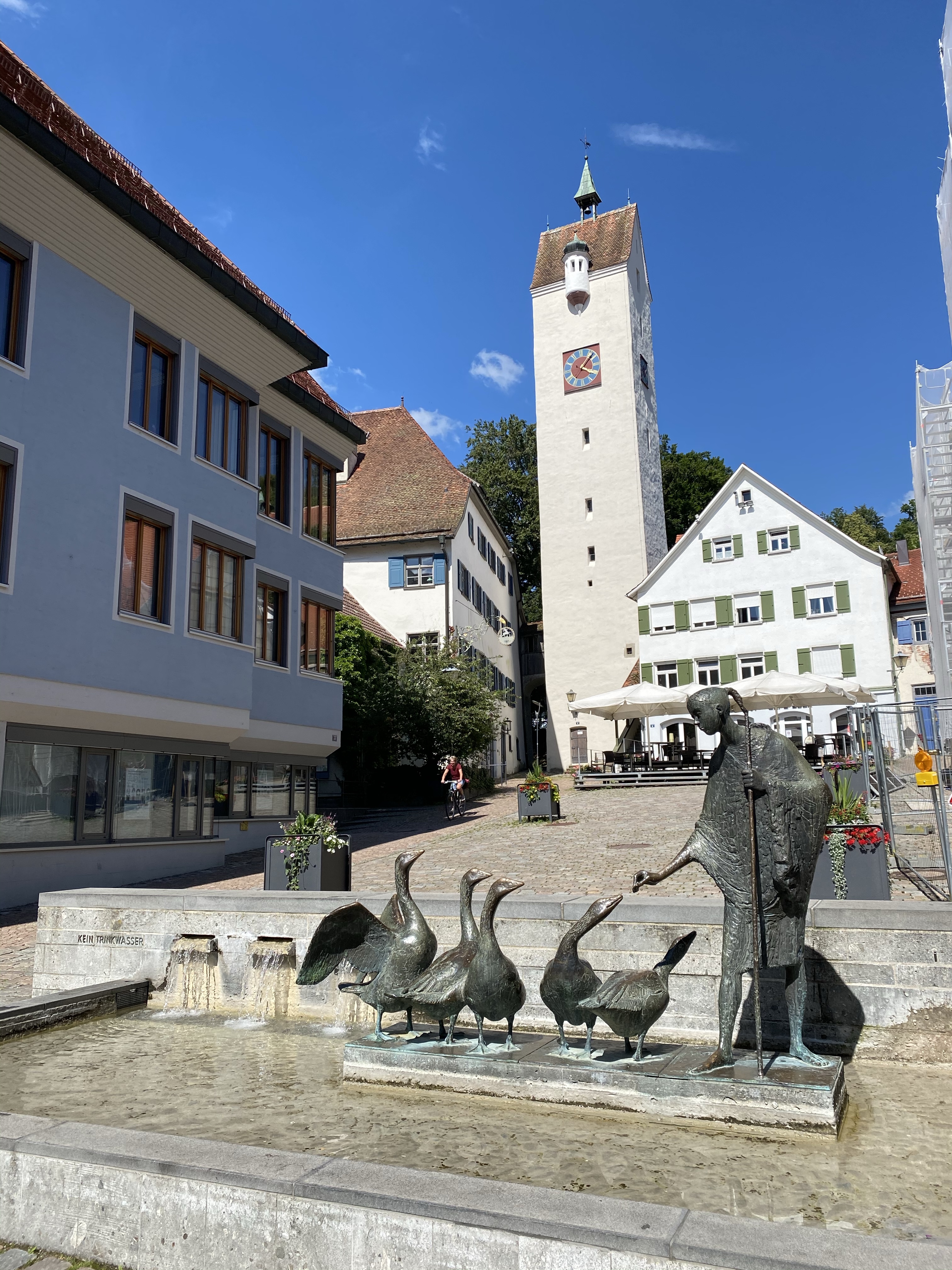 Danach ging es durch wunderschöne Waldstücke bis nach Leutkirch, wo die Strecke auch nochmal einen Bogen beschrieb, um am Stadtweiher vorbei und durch den Stadtpark zu führen, bevor ich in der Altstadt stand, wo die Geschichte mit der Unterkunft und dem Wäschewaschen weiterging.