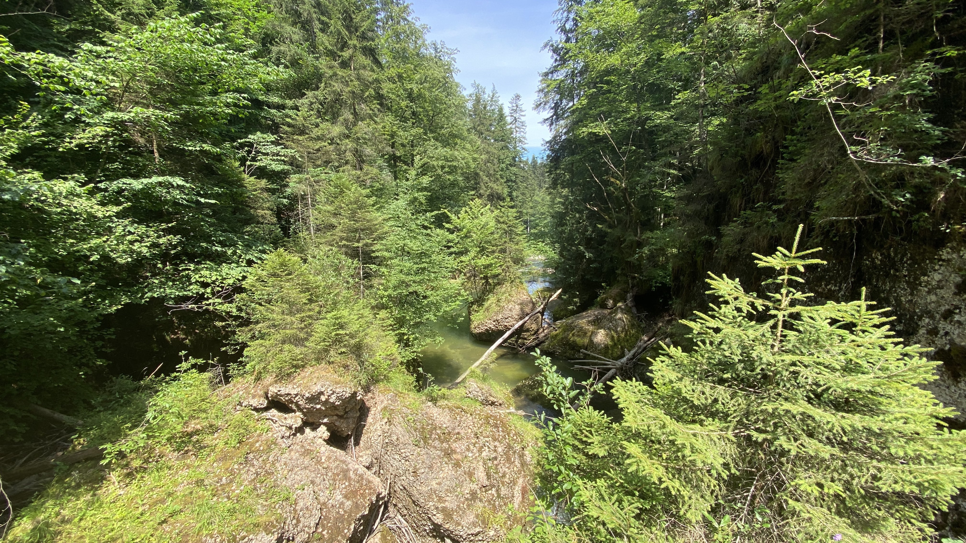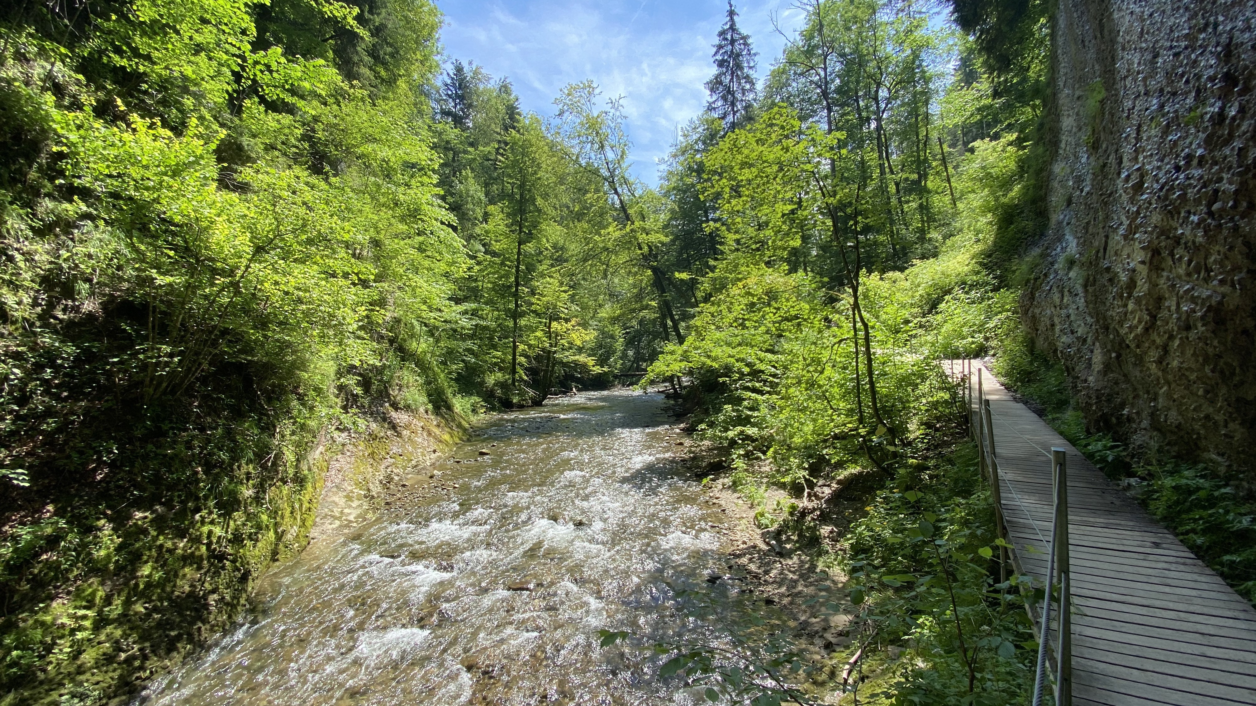 Also spute ich mich und lege einen Zahn zu. Die Zeitangaben bis zum Eistobel sagen mir, dass es knapp wird, wenn ich mit anderthalb Stunden für den Eistobel selbst rechne. Das war die Zeit, die ich bei der ersten Durchquerung gebraucht habe. Und auch wenn ich heute keine Videos mehr machen will, wird es um diese Zeit voller sein und damit evt. schwerer, durchzukommen.