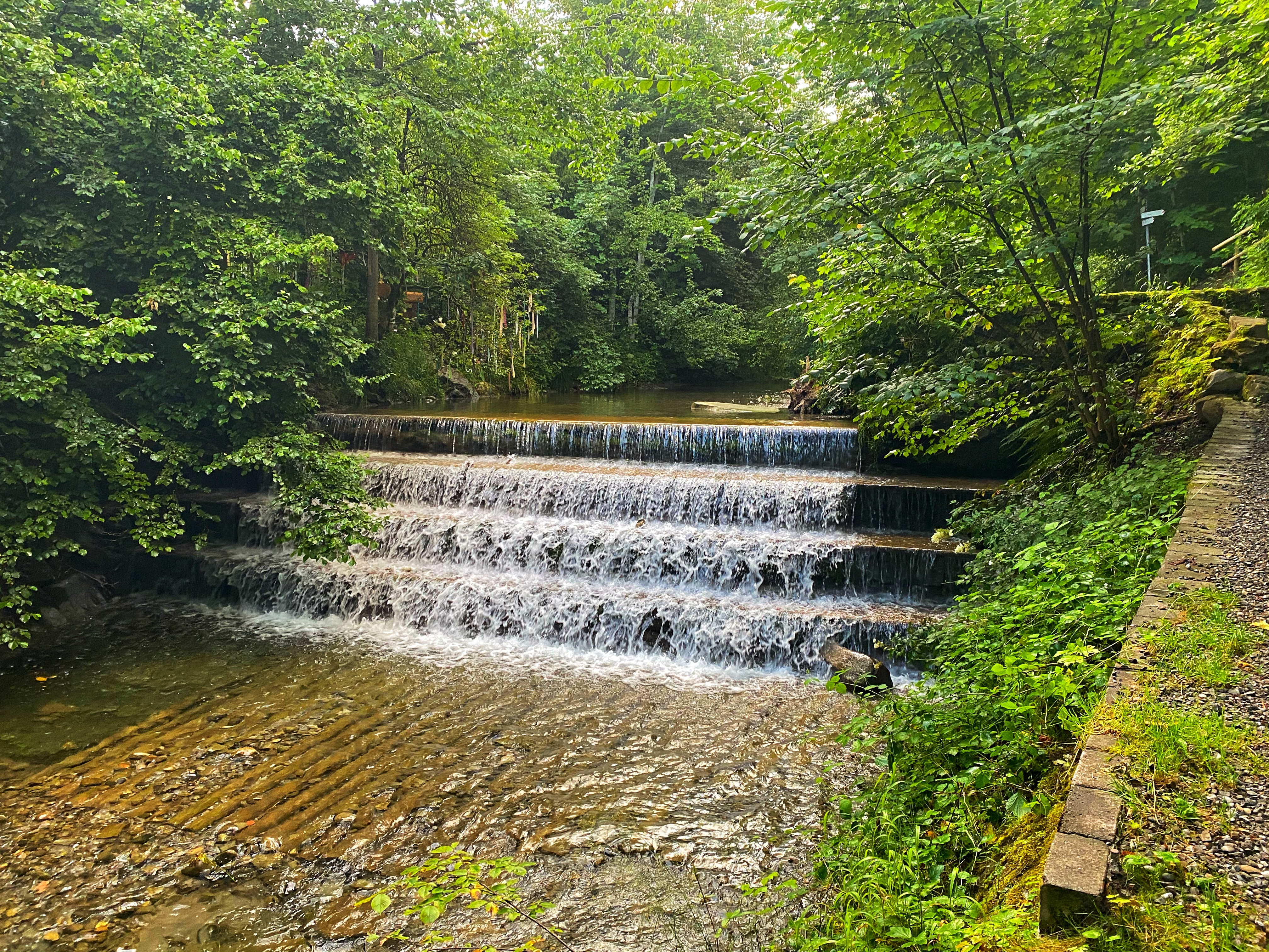 Die Hausbachklamm wäre die nächste Station gewesen, ist aber aufgrund von Bauarbeiten teilweise gesperrt, so dass ich zunächst die ausgeschilderte Umleitung laufe, die erstmal steil den Berg hinaufführt, bevor es endlich runter in die Klamm geht.