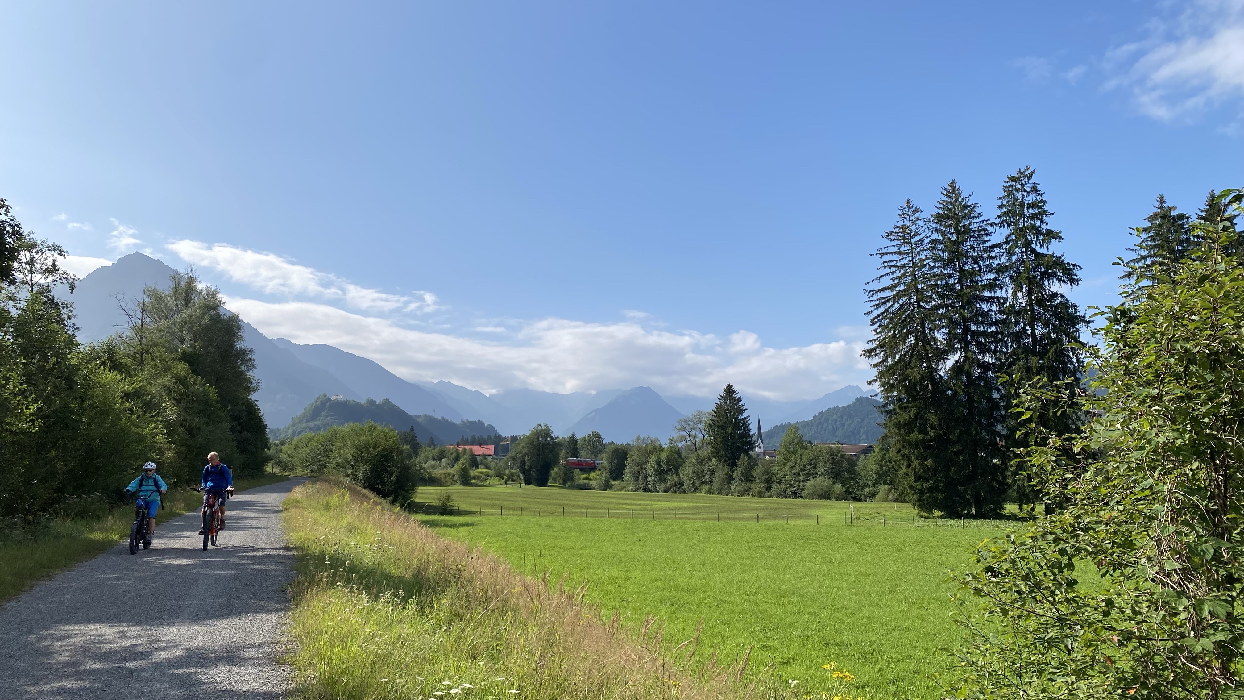 Jetzt sind es noch 14 km bis nach Oberstdorf und bis auf einen kleinen Anstieg in einem Waldstück, ist auch diese Strecke flach, aber ganz schön.