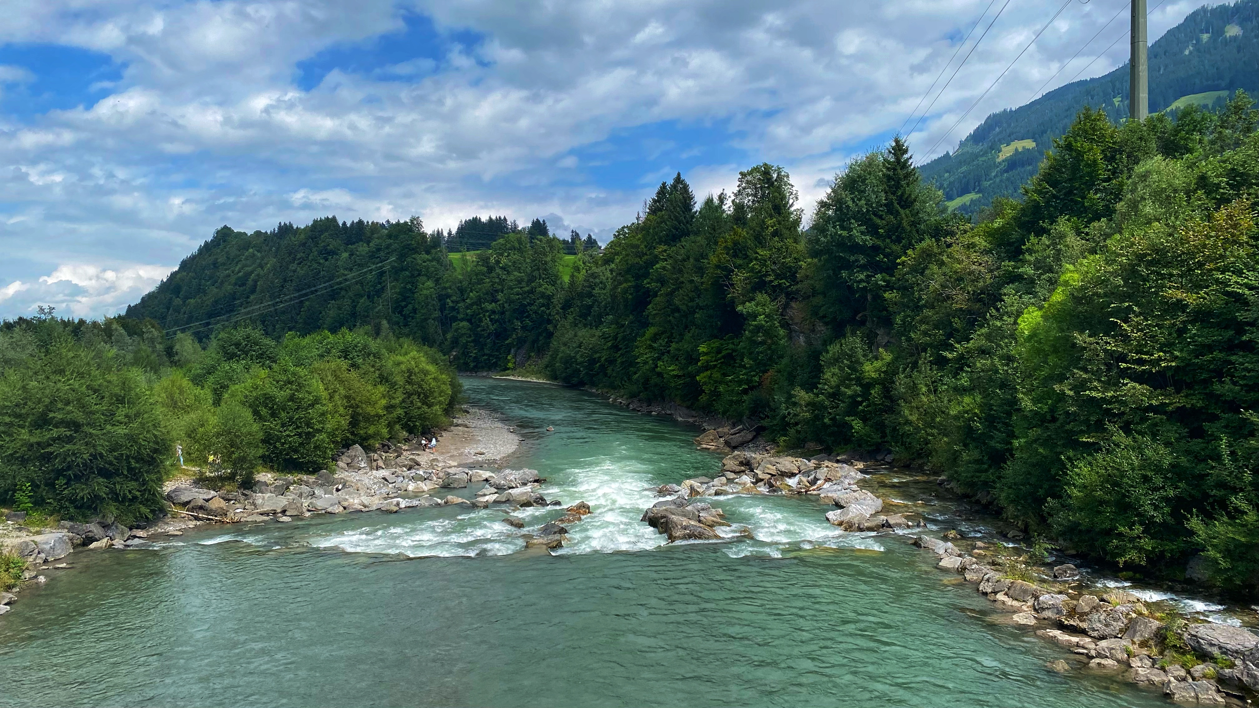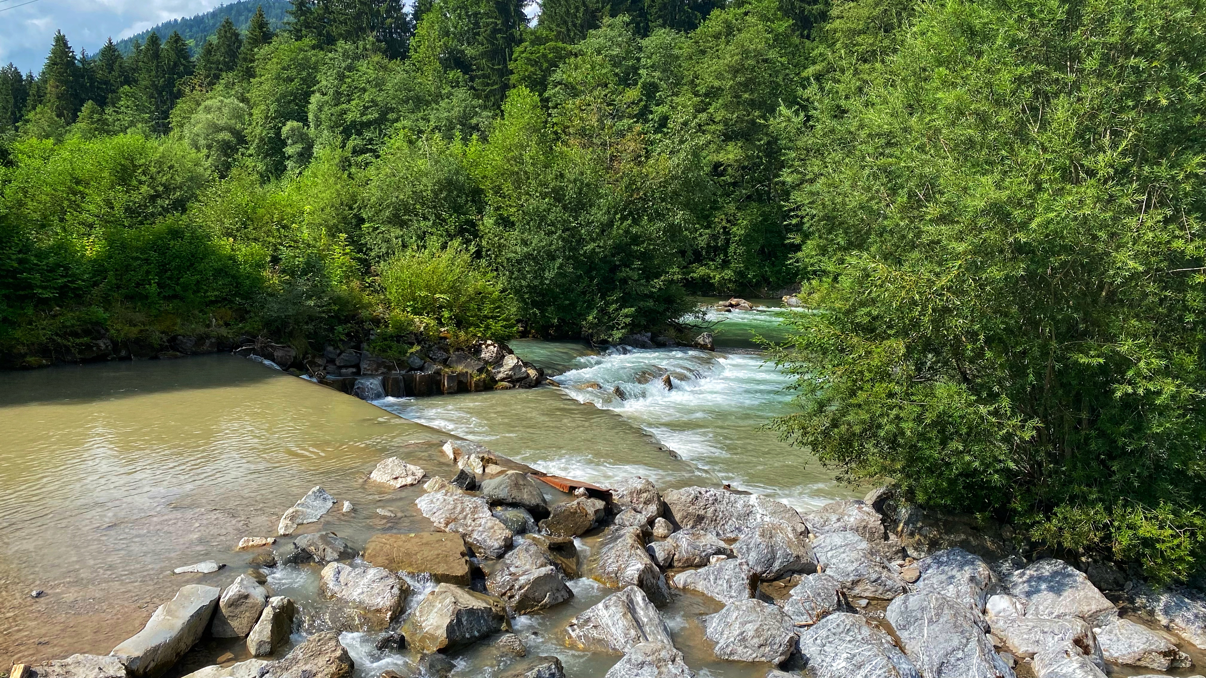 Kurz vor Oberstdorf komme ich am Illerursprung vorbei. Die Iller entsteht durch das Zusammentreffen von drei Gebirgsbächen: Trettach, Stillach und Breitach.