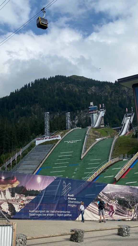 Nach zweieinhalb Stunden Aufenthalt in Oberstdorf mache ich mich wieder auf den Weg und schlendere vorbei an der Nebelhornbahn und den berühmten Ski-Sprungschanzen in Richtung Oytal.