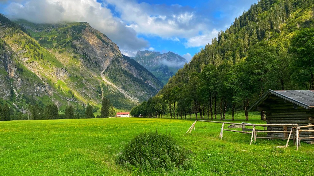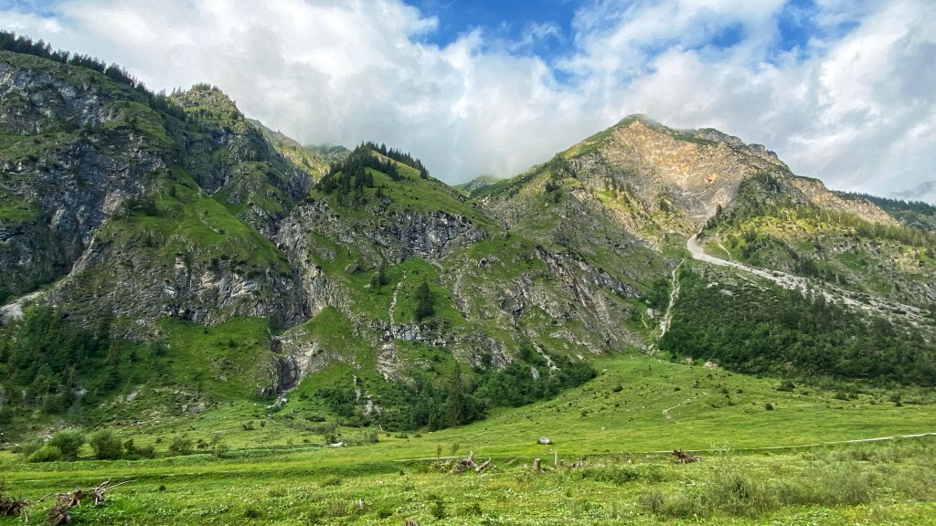 Und das ist richtig, richtig schön! Ein langgestrecktes Tal, bewachsen mit saftigen, blühenden Wiesen, eingerahmt von majestätischen Bergen.