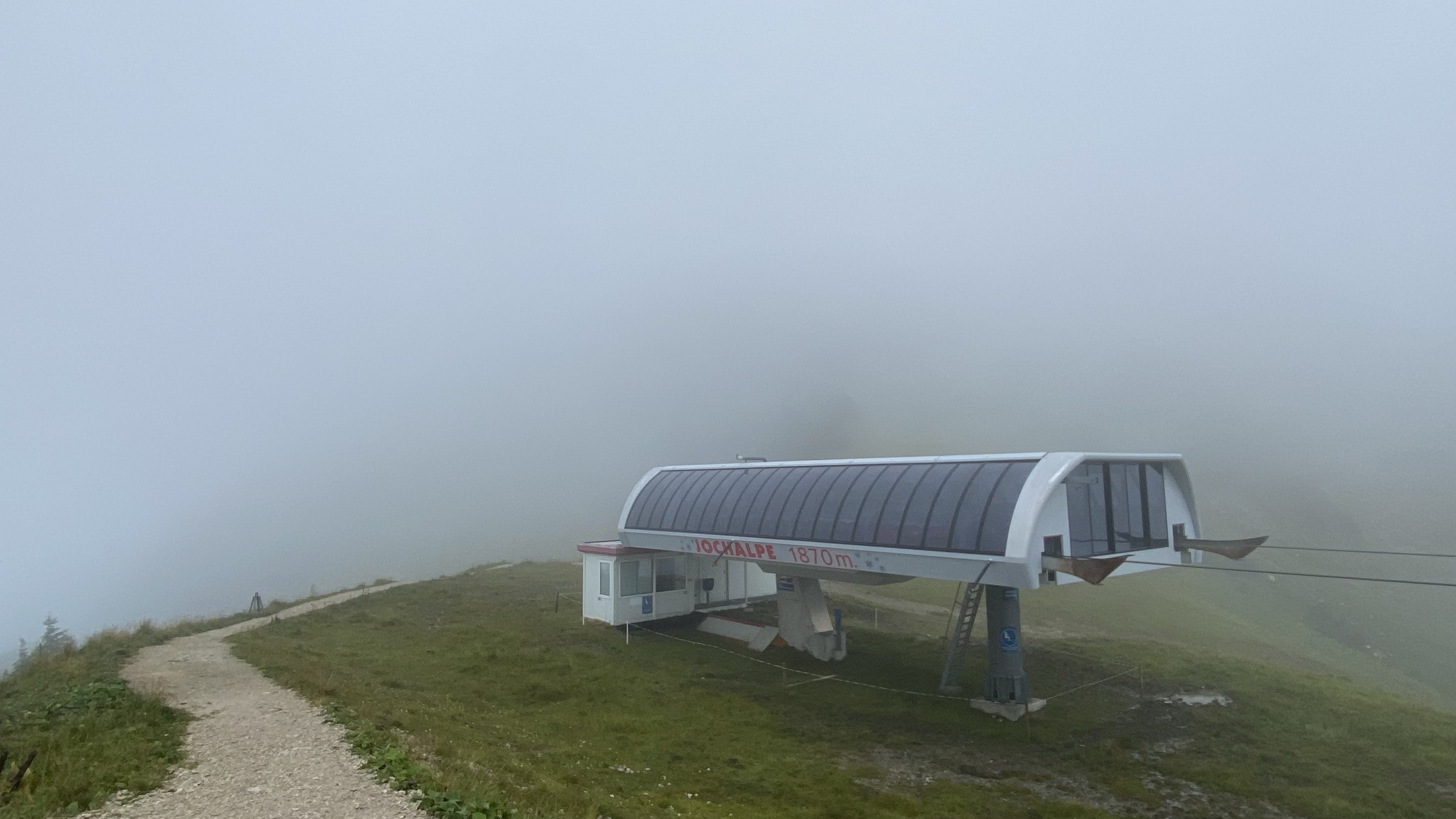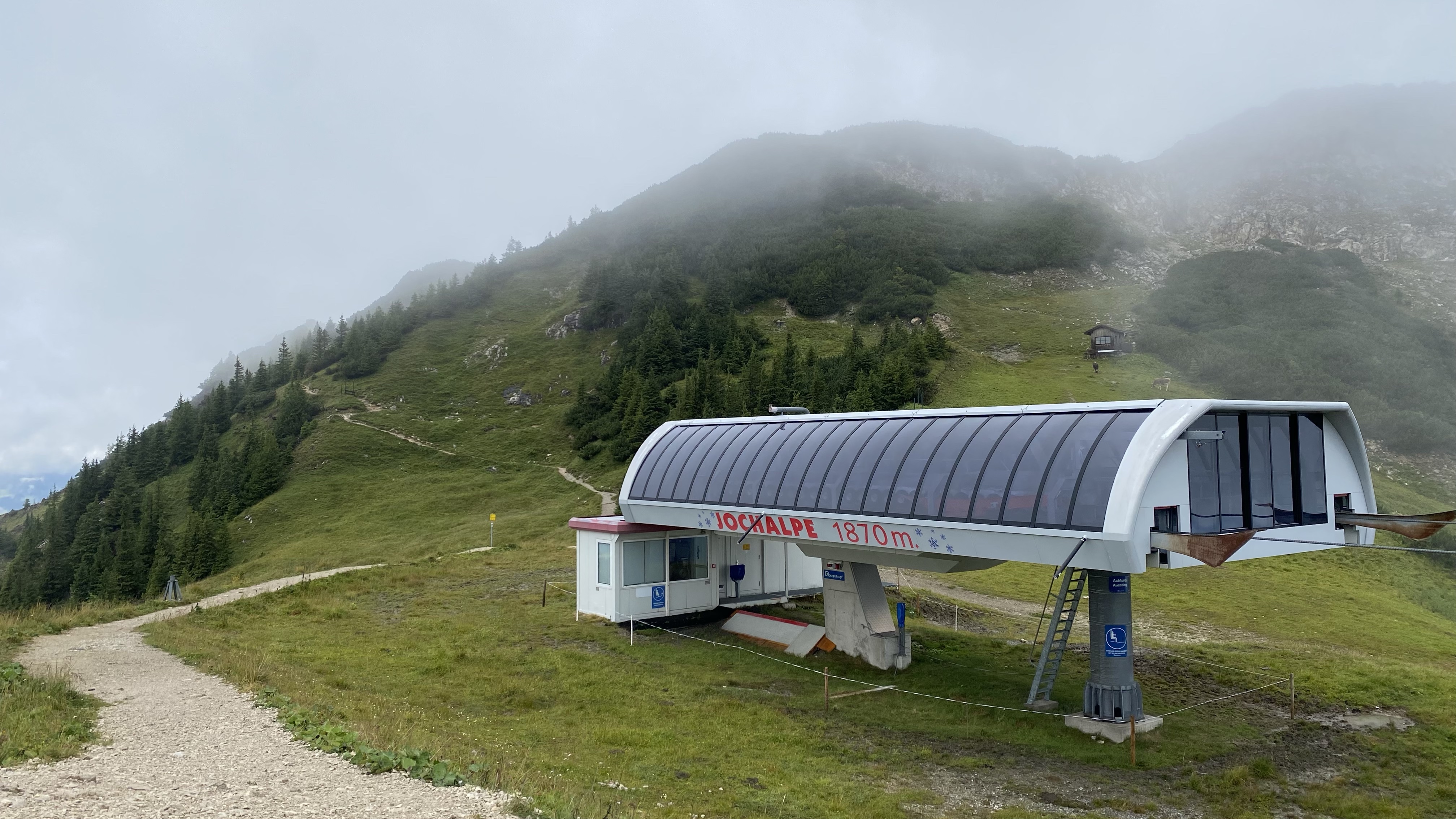 Dann ging es noch eine Stunde hinauf bis zur Bergstation der Füssen Jochl-Bahn. Als ich kurz vor acht Uhr dort ankam, trafen gerade die Mitarbeiter der Alpe ein, die eine Sonderfahrt mit der Seilbahn erhalten hatten. Offiziell startete diese nämlich erst um 08:45 Uhr.
