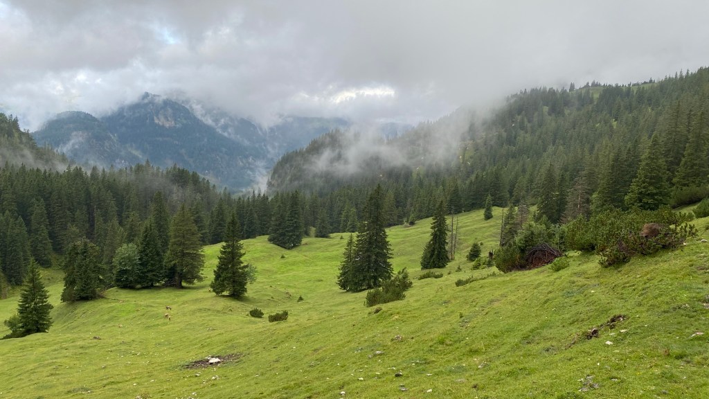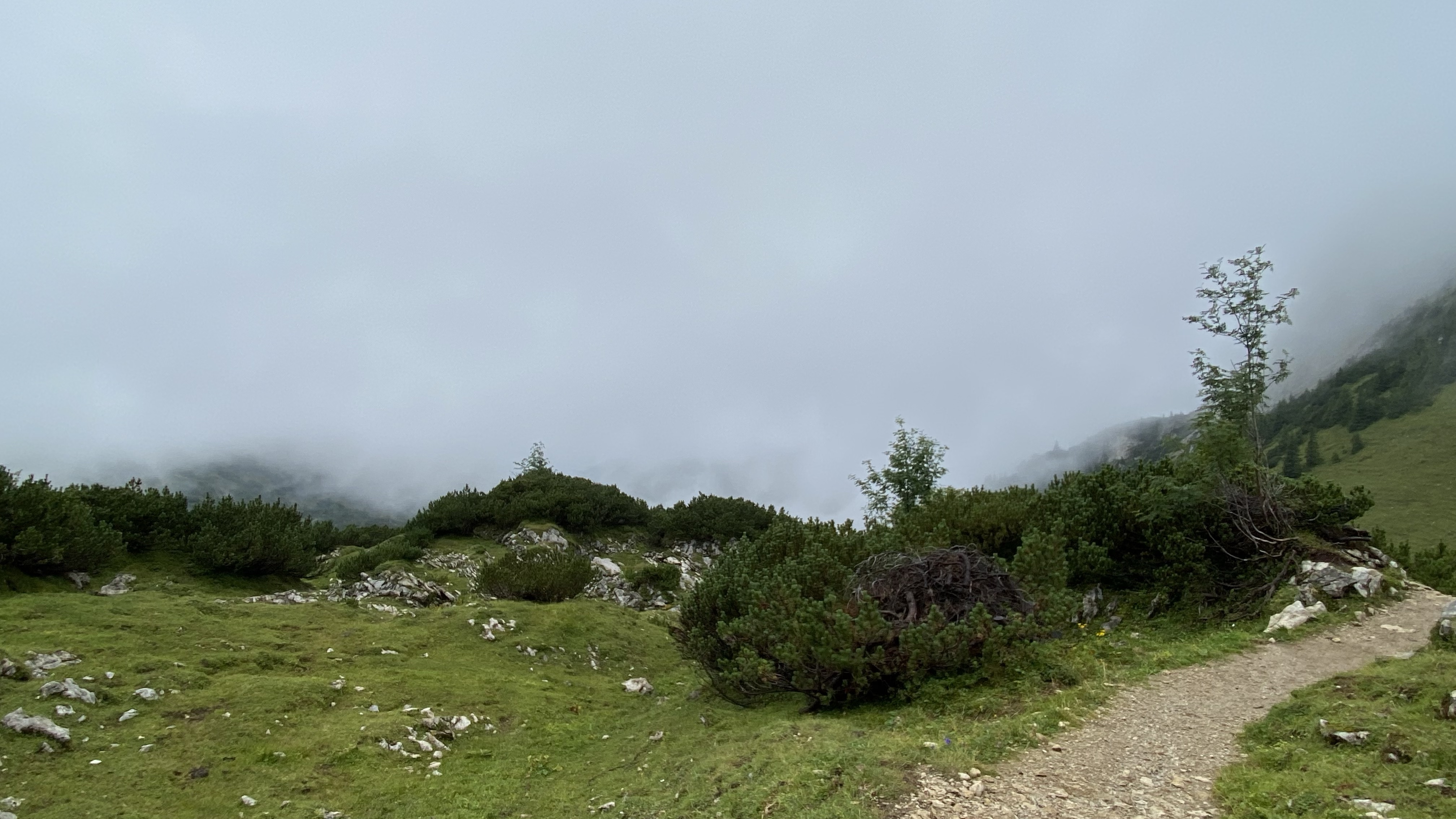 Durch die Wolken und die frühe Uhrzeit war alles ruhig und friedlich und ich habe die Stille sehr genossen. Nur ab und zu war eine entfernte Kuhglocke oder das Tschiepen eines Vogels zu hören.