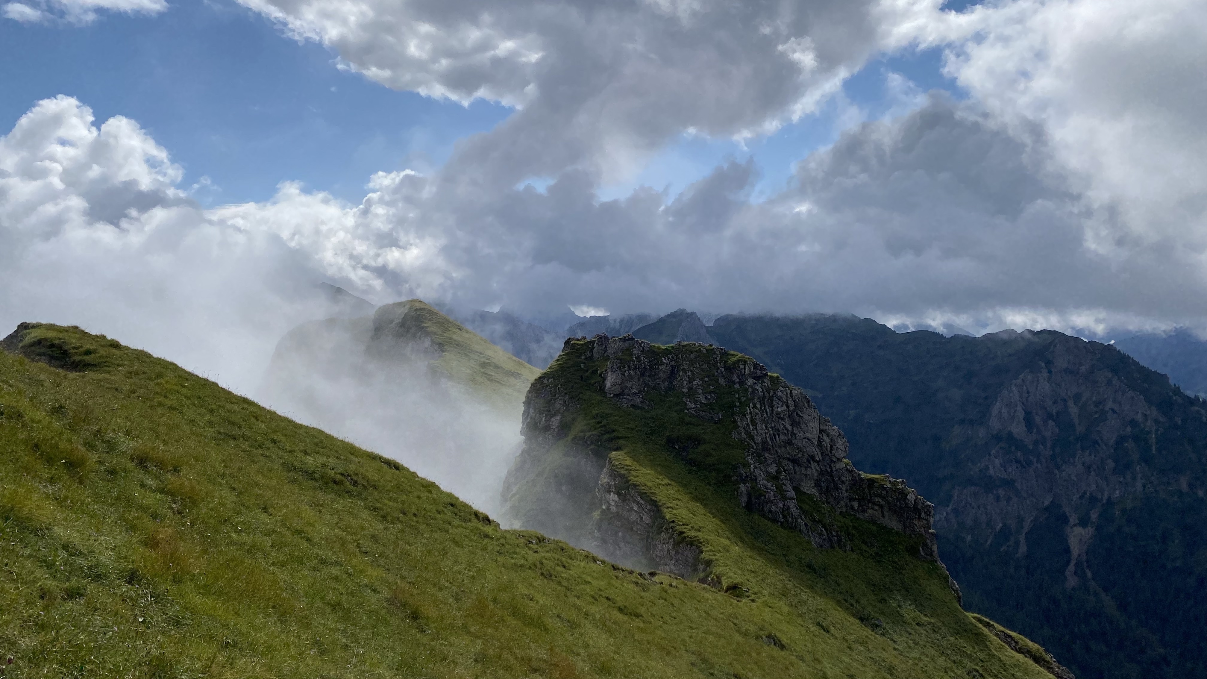Kalt war es nicht und so marschierte ich weiter von der Läuferspitze über den Gamskopf und dann wieder etwas runter in ein Tal zwischen den Gipfeln.