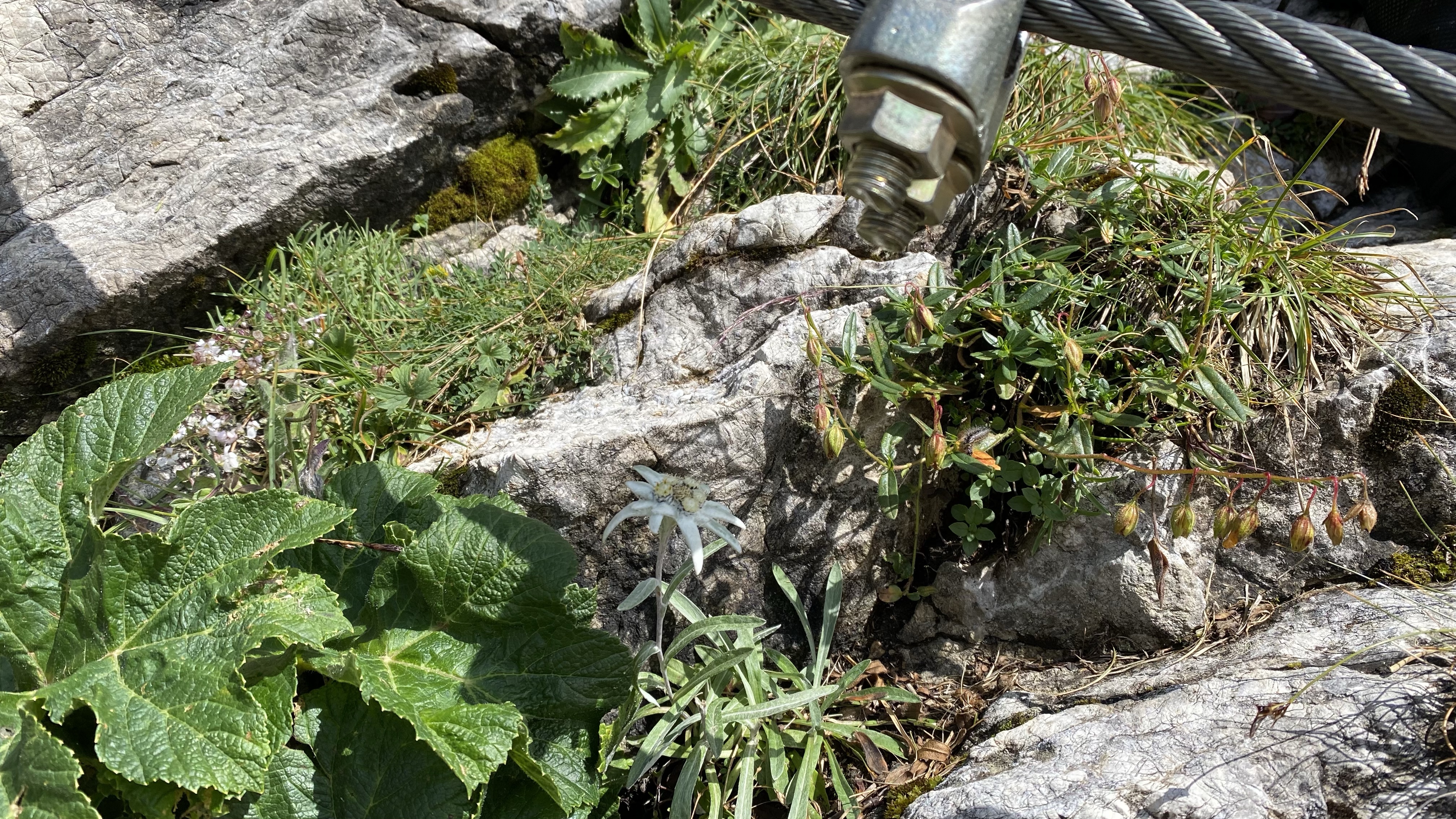 Da ich nun zum ersten Mal in meinem Leben Edelweiß in natura gesehen habe, bin ich so euphorisch, dass ich sogar den Abstieg an den Seilen und danach auf rutschigen Serpentinen gutgelaunt meistere.