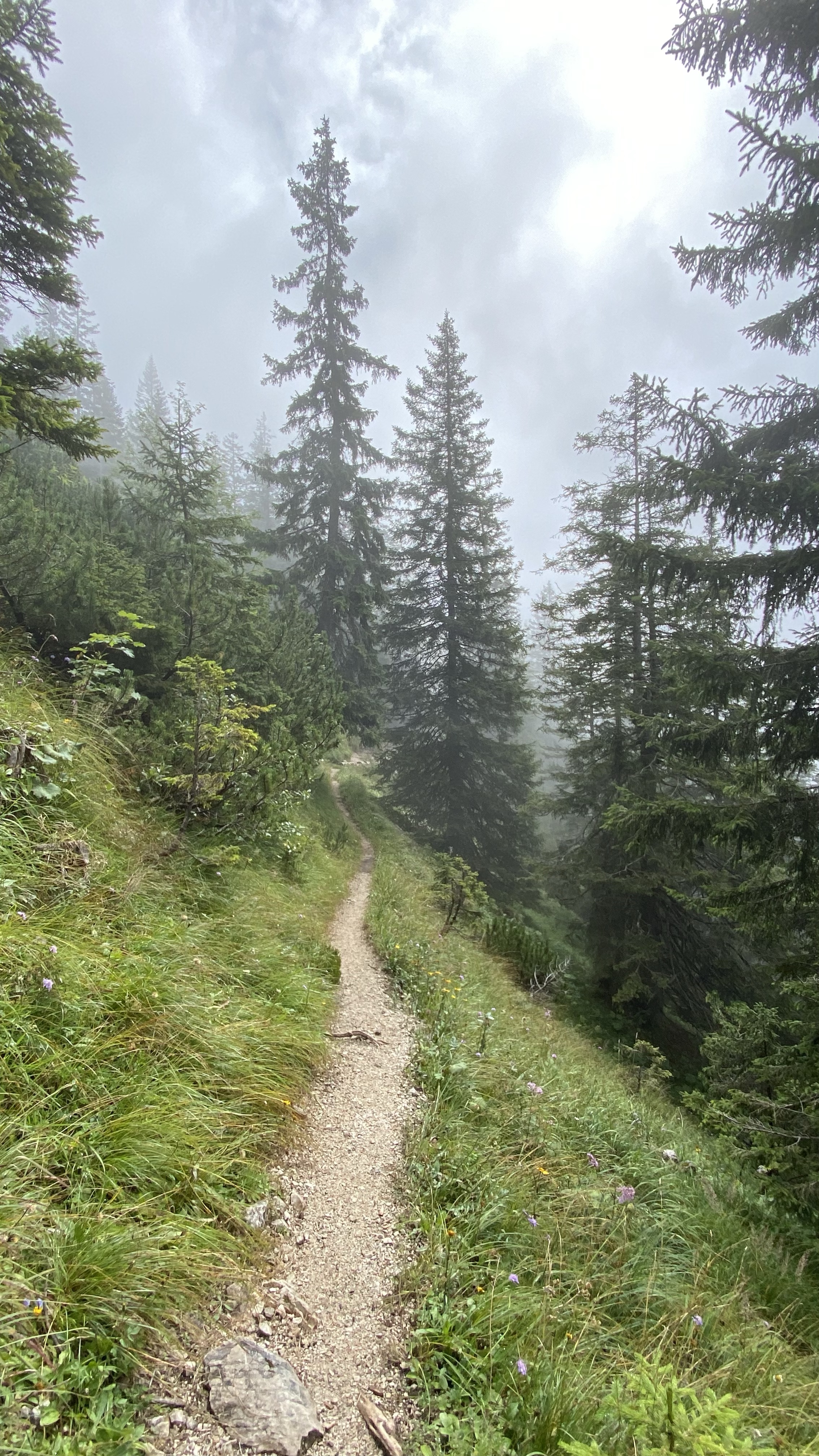 Doch nun ging es los und meine Beine freuten sich richtig, sich wieder bewegen zu dürfen. Der Nebel bzw. die tiefhängenden Wolken sorgen für eine angenehme Ruhe und nach einigen Kilometern habe ich die Familien und anderen Wanderergruppen auch alle hinter mir gelassen und kann relativ ungestört den Weg genießen.