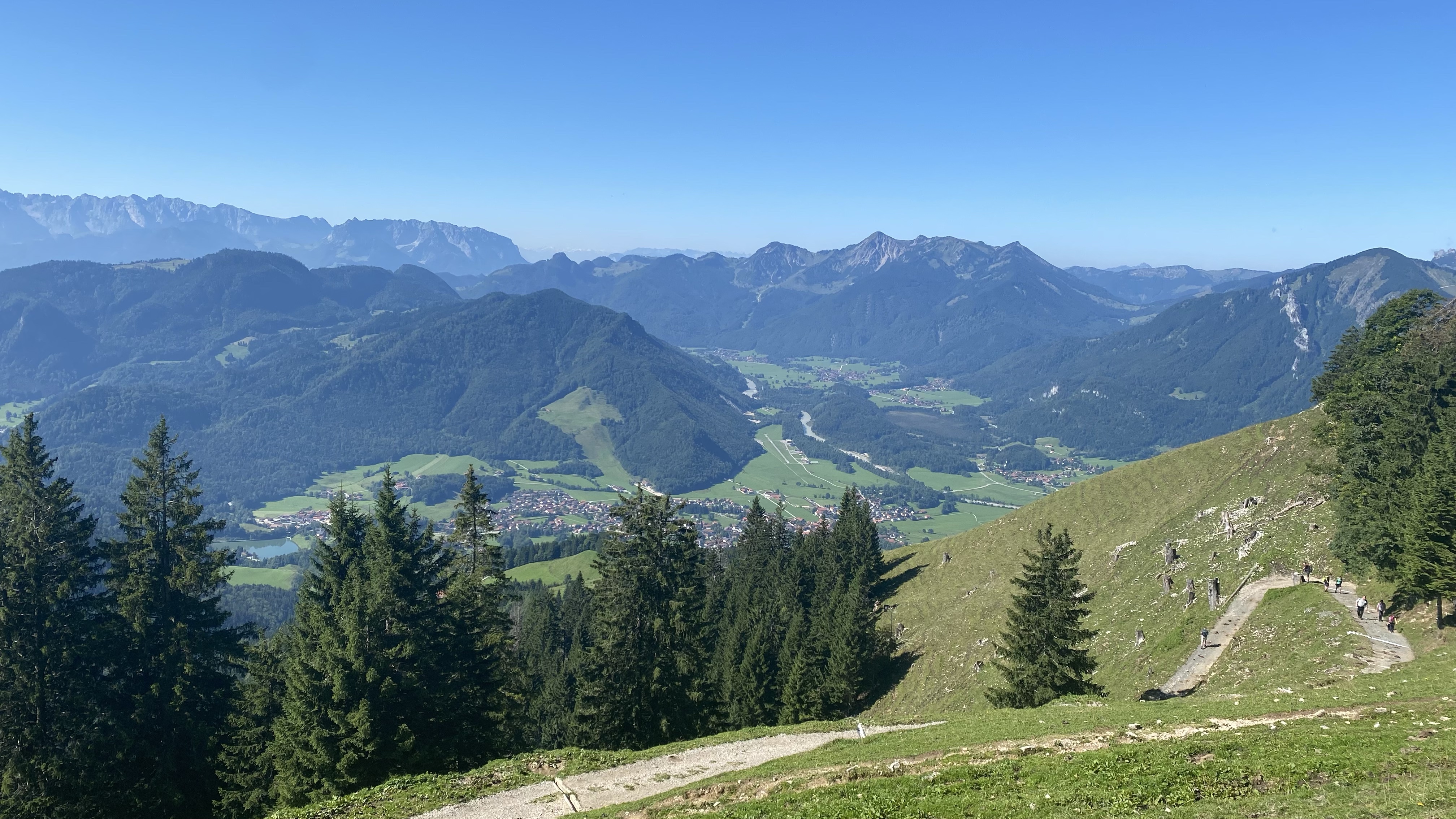 Danach geht es natürlich wieder bergab, über einen schmalen, langen Pfad über Weiden und durch Wälder in Richtung Ruhpolding.