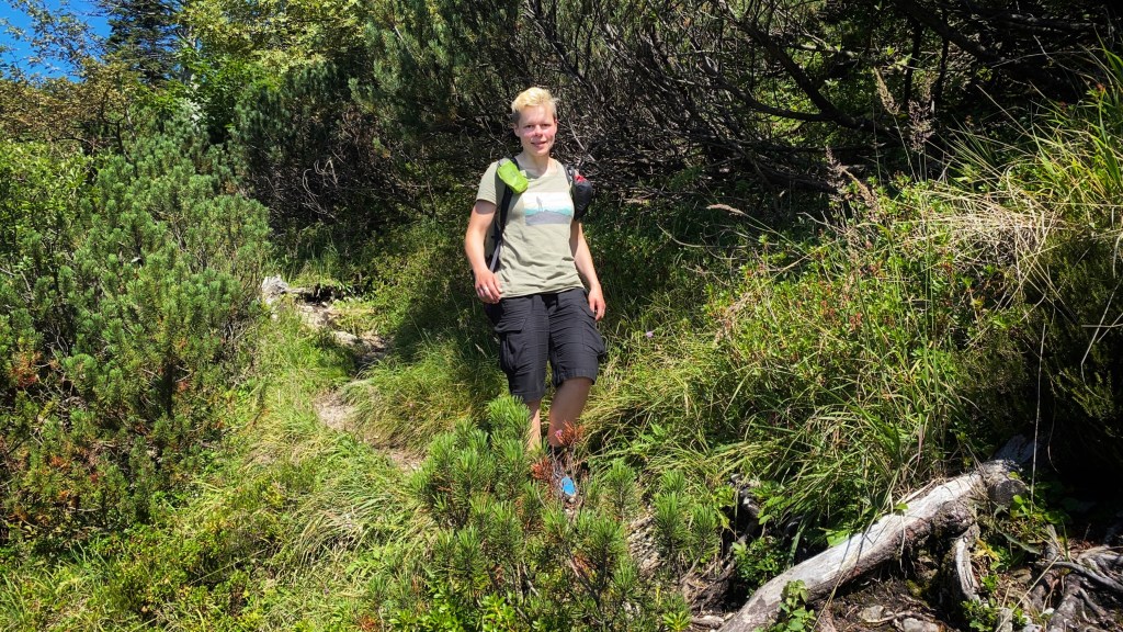Das bedeutet, dass das heute mein letzter Tag ist und diese Etappe bietet sich sehr dafür an. Der Weg zur Zwieselalm ist wirklich wunderwunderschön! Es geht lange am Hang zwischen Nadelbäumen und duftenden Blumen entlang, immer mit Blick auf die schneebedeckten Gipfel auf der anderen Seite des Tals.