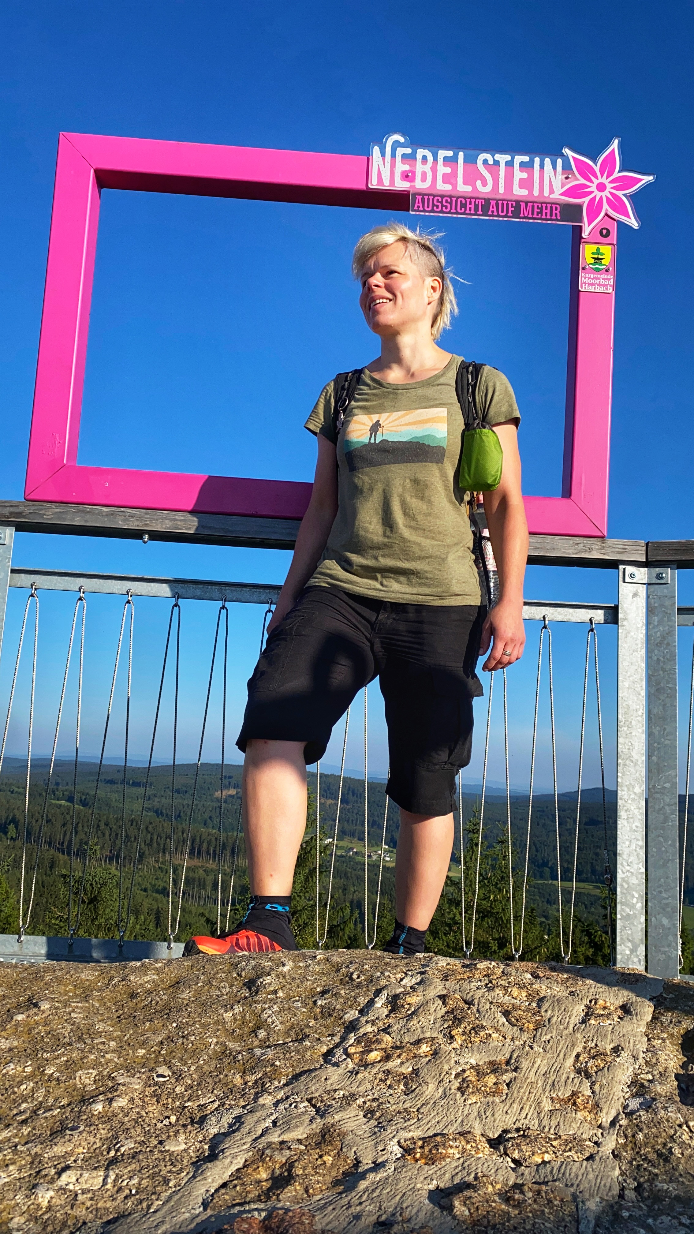 Also muss ich erstmal vier Kilometer vom Campingplatz auf den Nebelstein hinaufsteigen, bevor ich von dort nach den obligatorischen Startfotos und meinem ersten Stempel im Wanderführer meine Wanderung offiziell beginnen kann.