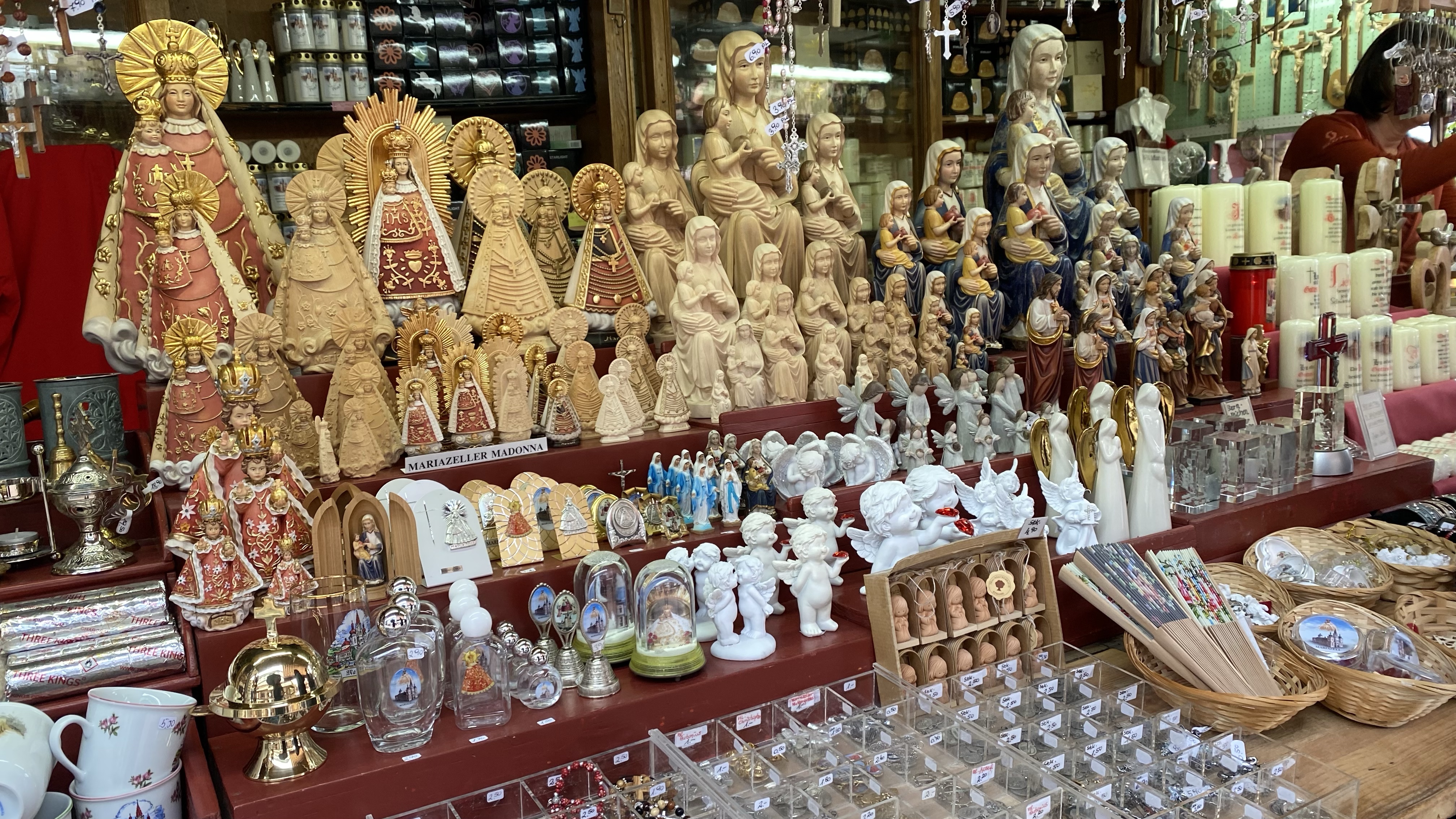 Rund um das Kirchengelände finden sich jede Menge Stände, an denen der gemeine Pilgerer alles erstehen kann, was man auf einer Wallfahrt zu benötigen scheint und das ist eine ganze Menge.