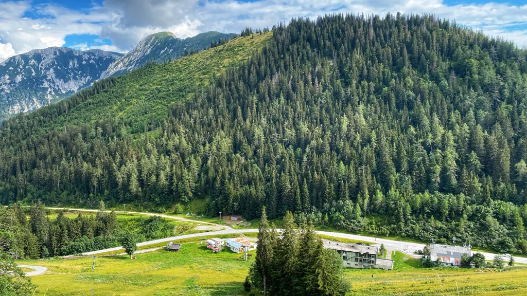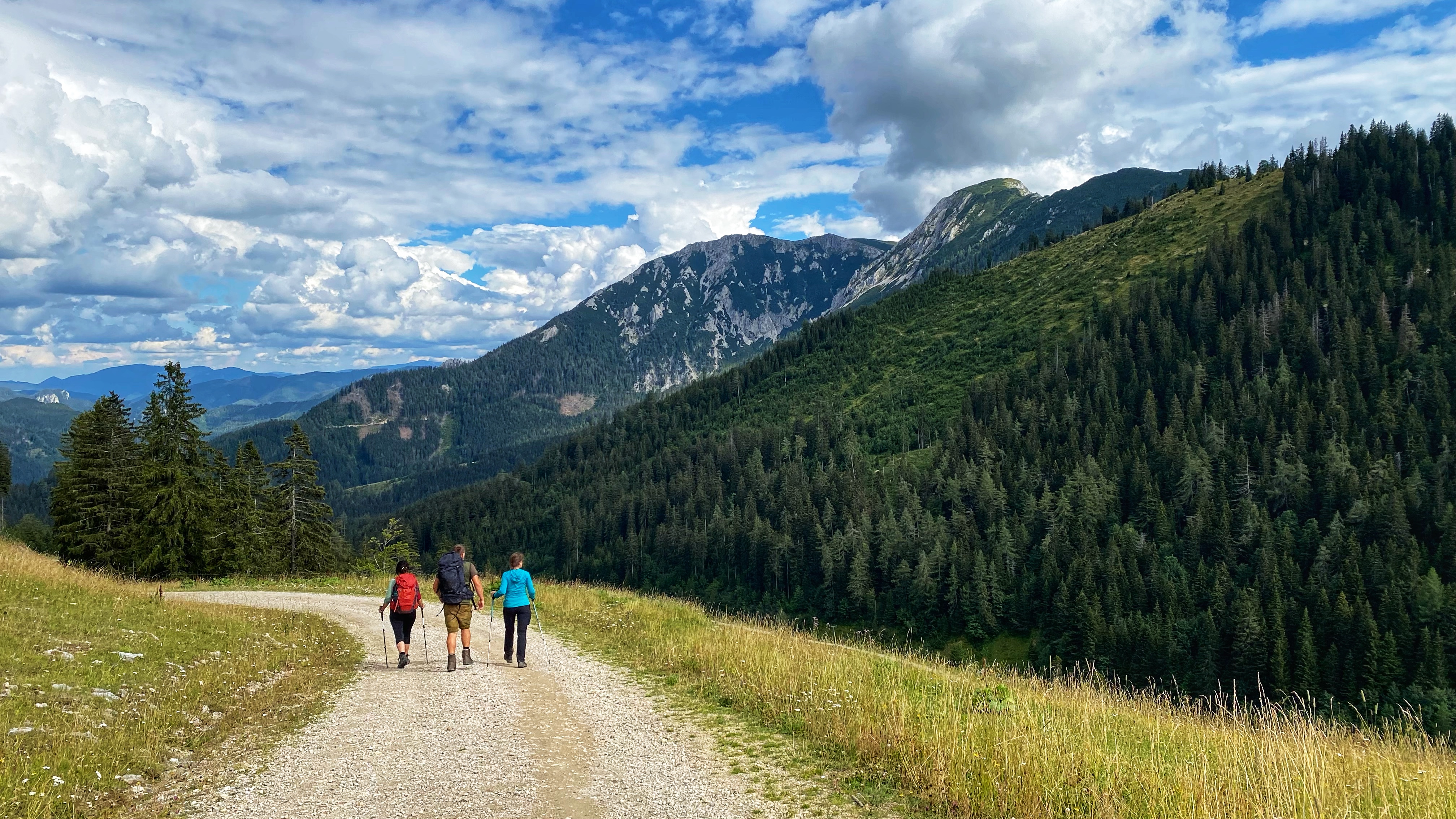 Als ich schon die ersten Höhenmeter hinter mir und das Bergpanorama vor mir habe, ist bestes Wanderwetter und ich freue mich jetzt schon auf morgen. Da soll es nämlich auch schön werden, passend für den Aufstieg auf die hohe Veitsch, immerhin 1.981 m hoch.