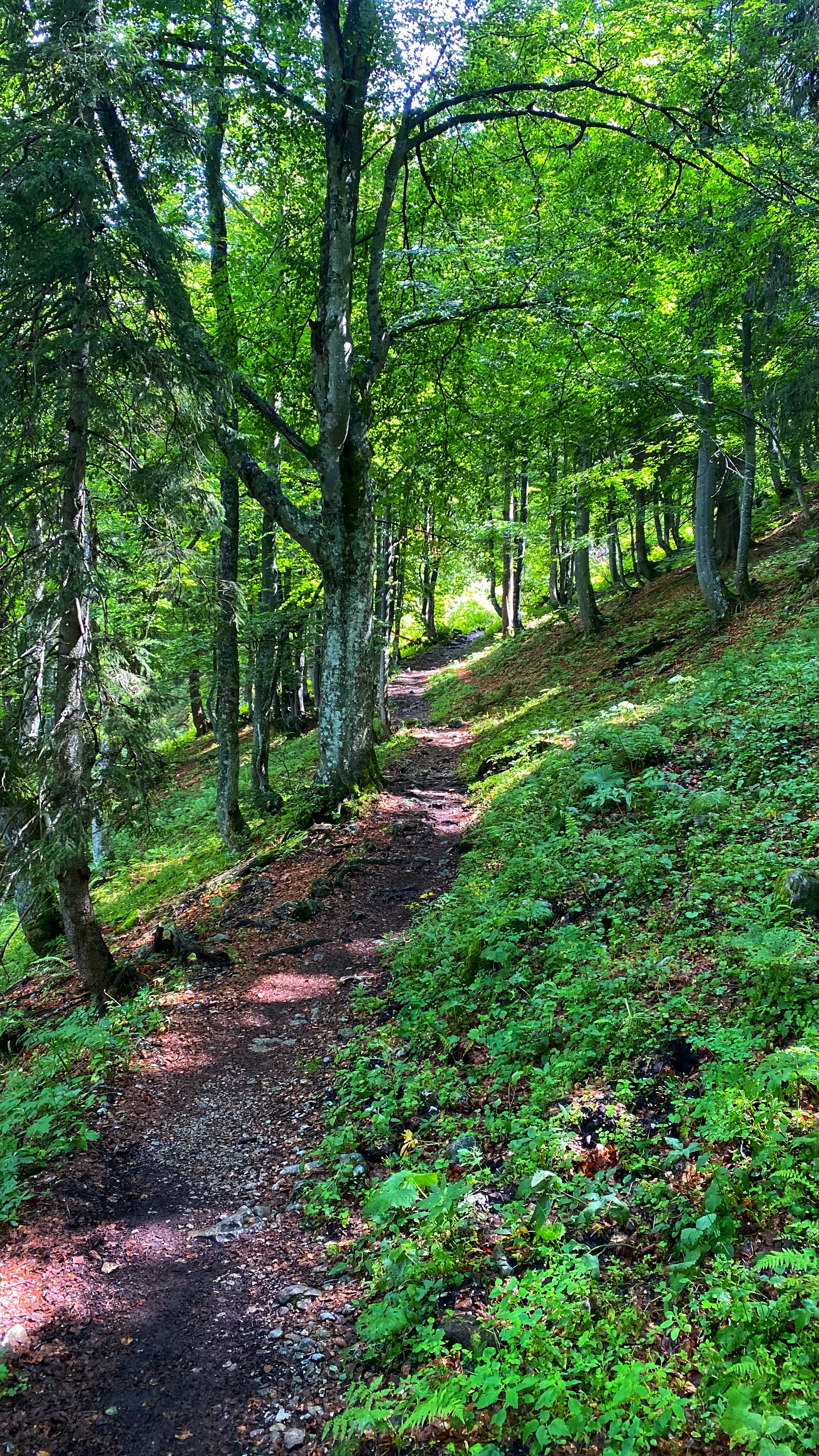 Von der Hochfläche Herrenboden kann ich zum ersten Mal den Gipfel sehen – und bin heilfroh, nicht heute noch da hoch zu müssen.
