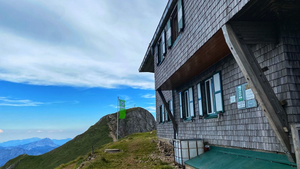 Ein junger Kerl, der mich kurz vorm Gipfel mit einem großen, schweren Rucksack spielend überholt hatte, stellt sich als Hüttenmitarbeiter heraus – der Aufstieg ist sein Arbeitsweg! Und wahrscheinlich hat er einiges der leckeren Köstlichkeiten, die die Hütte uns hungrigen Wanderern anbietet, gerade hochgetragen.