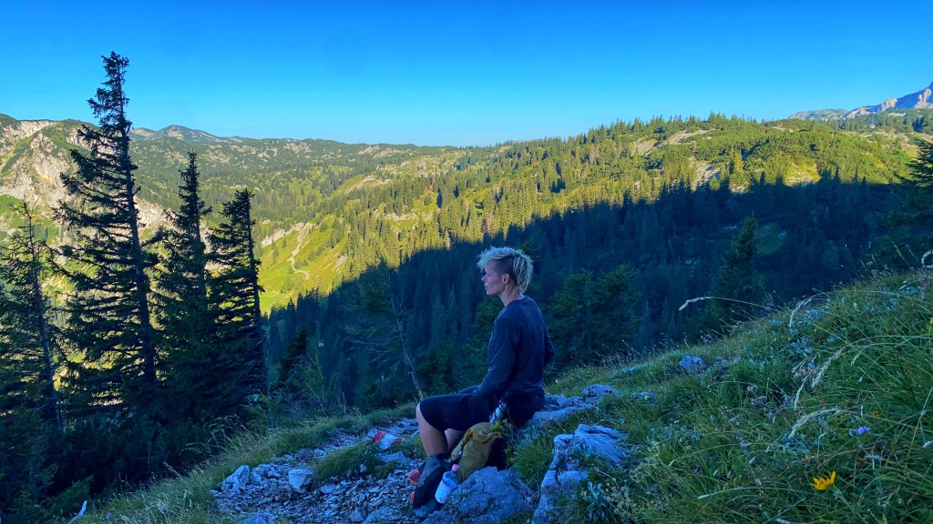Tja, was soll ich schreiben…war kein schöner Anblick für all die anderen WanderInnen, die mich mitleidig angeschaut haben, wenn ich mal wieder japsend am Wegrand saß. Und für mich war es auch alles andere als ein schönes Erlebnis, bis zur Hütte zu kommen. So schwer viel mir ein Anstieg noch nie, ich war komplett am Ende und bei Erreichen des ersten Sattels ganz kurz davor umzudrehen.