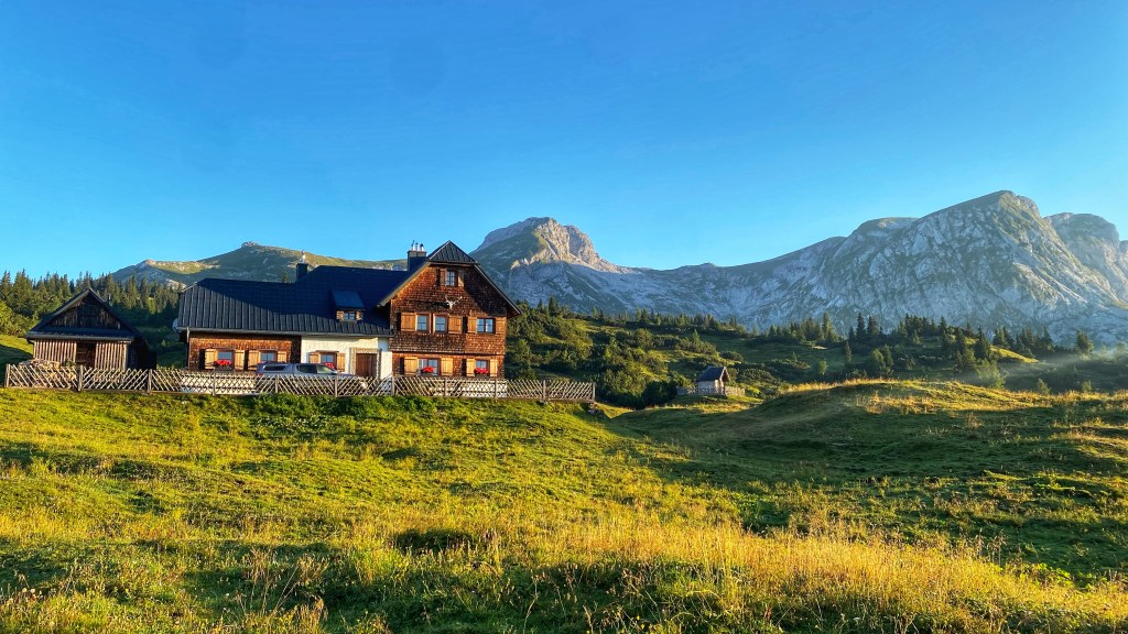 Es sind nur noch wenige Minuten bis zur Sonnenschienalm, wo noch alles ruhig ist und ich nur schnell Wasser auffülle, bevor ich weiter durch die erwachende, sich durch die aufgehende Sonne schnell aufwärmende Landschaft wandere.