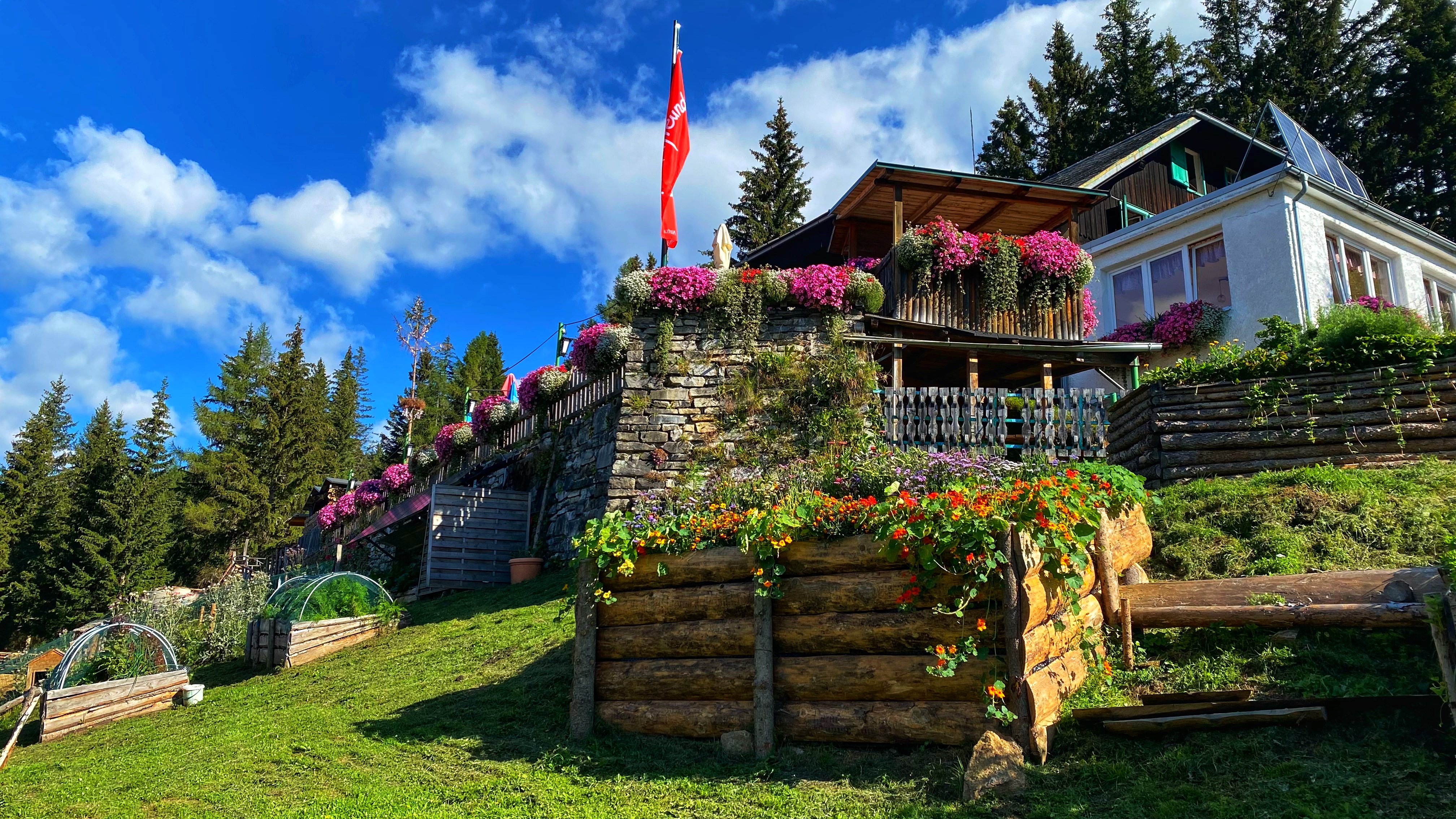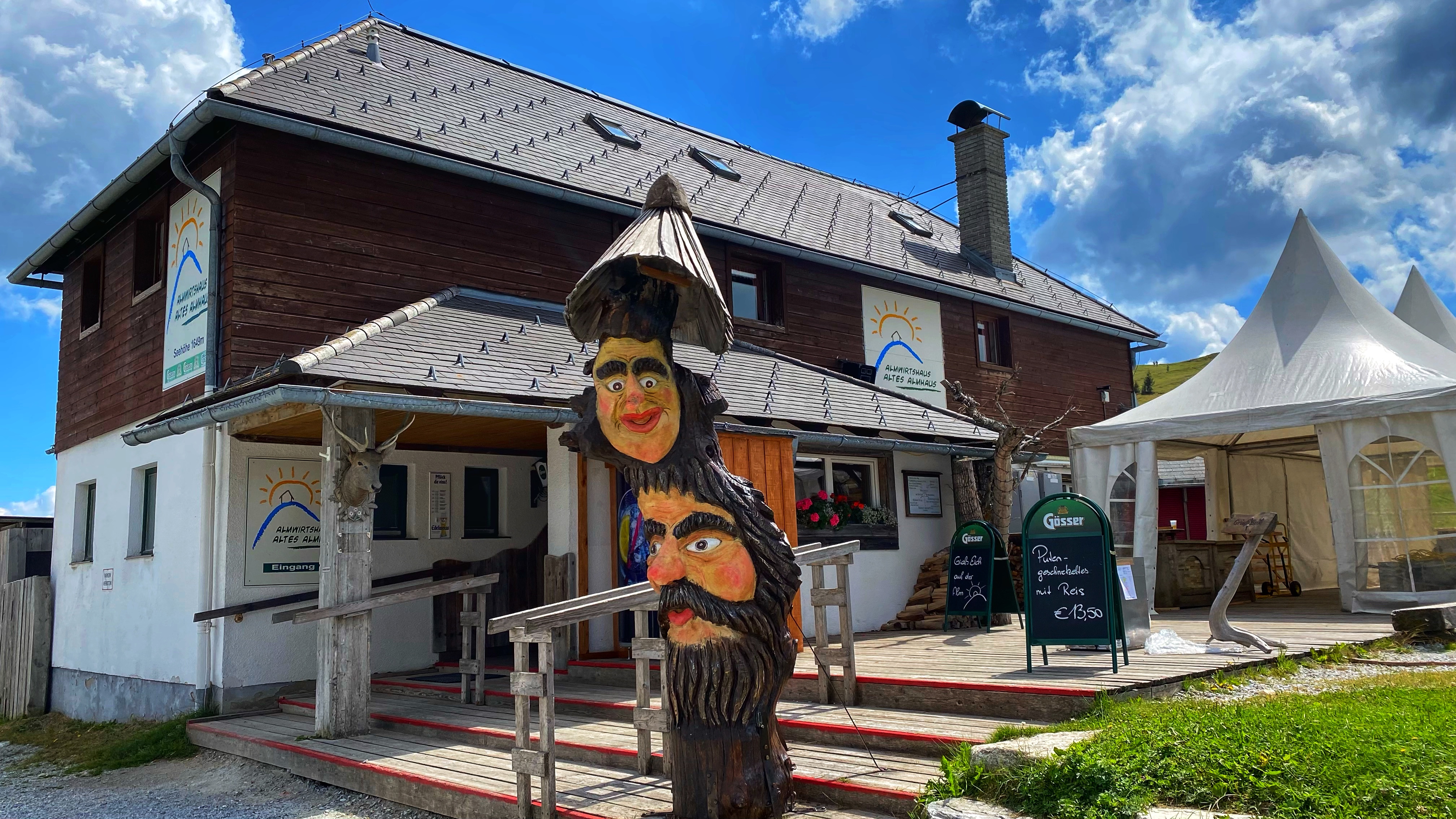 Da es keine markanten Fernblicke zu bestaunen oder groß auf den Weg zu achten gibt, höre ich seit langer Zeit mal wieder Podcasts und komme gegen 14:00 Uhr in Gaberl an. Dort wollte ich eigentlich etwas Essen, aber die Speisekarte gibt außer gebratenen Gemüseröllchen nichts Vegetarisches her und voll ist es auch, also gehe ich noch gut 3km weiter bis zum „Alten Almhaus“.