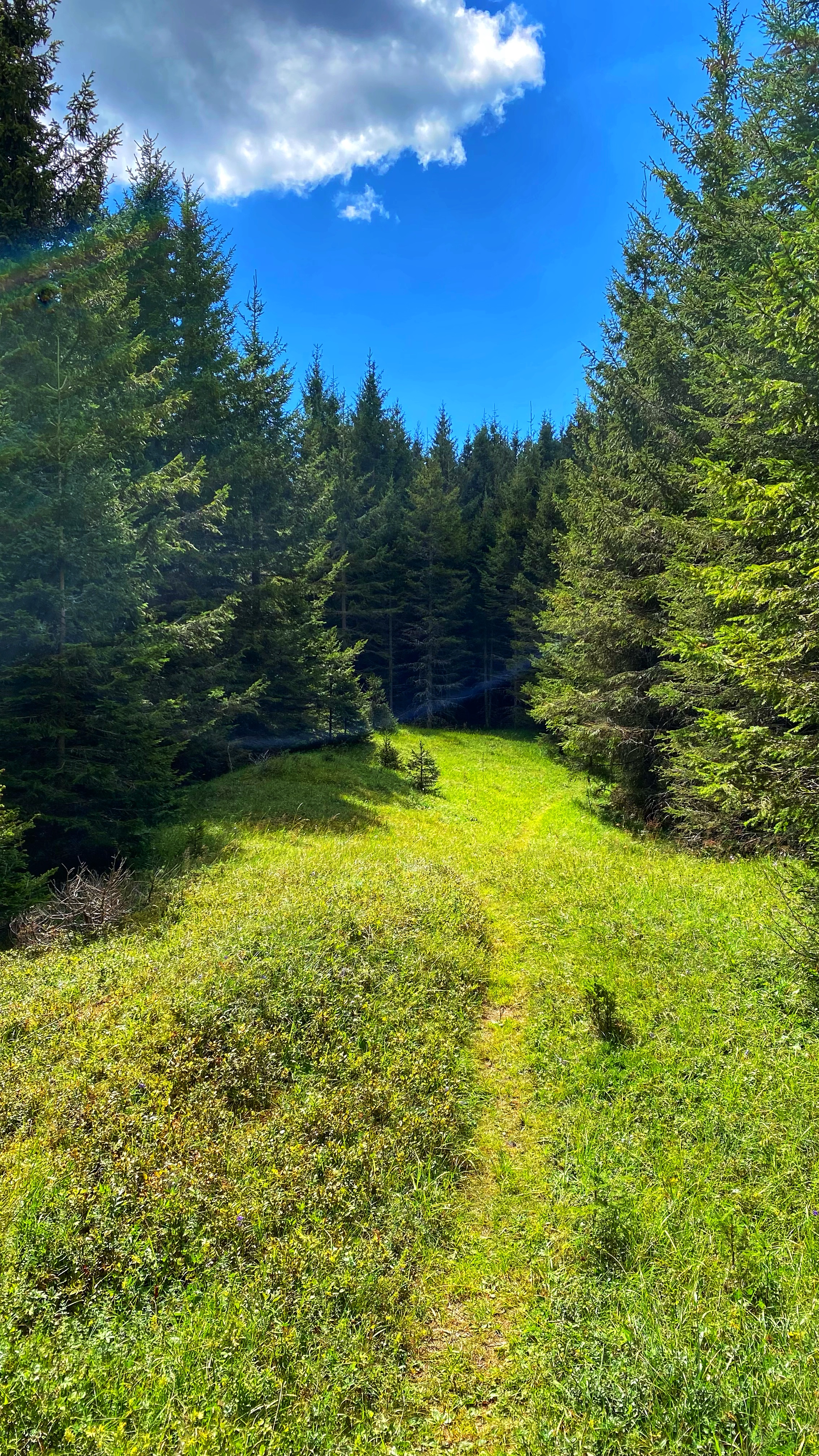 Nach ca. der Hälfte der Strecke kommt mir eine nette, ältere Wanderin entgegen, die wissen möchte, wie lange ich unterwegs war. Sie hat wohl getrödelt und Pilze gesucht und dabei die Zeit vergessen und es jetzt etwas eilig. Wir plauschen kurz und zum Abschied sagt sie den Satz des Tages: „Ab tausend Meter gilt das Du“ ☺️