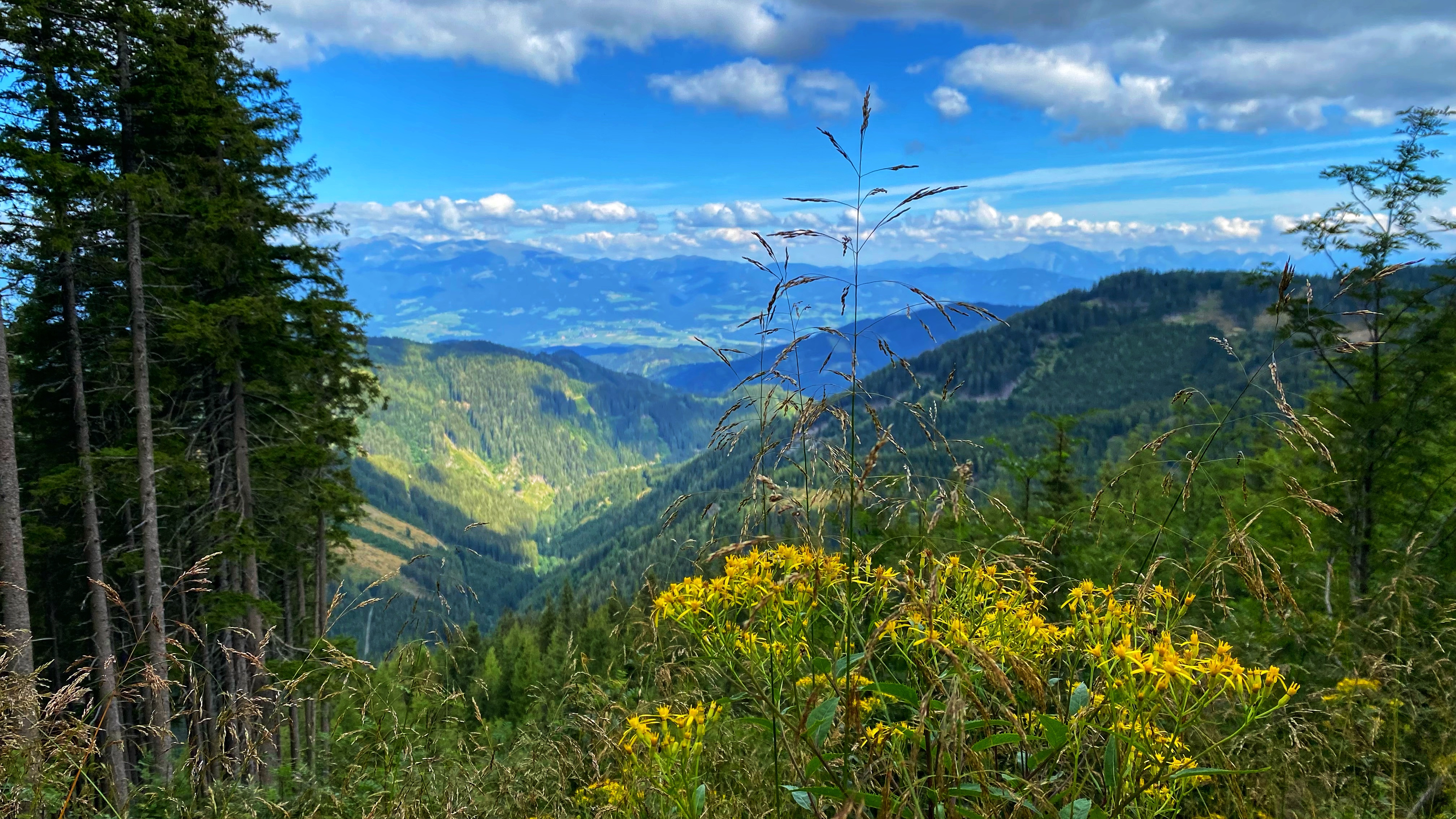 Die ersten sieben Kilometer geht es anschließend an gestern über Bergrücken und -Almen, aber eben immer abwärts. Genauer geht es über die Roßbach-, Terenbach- und Stubalme.