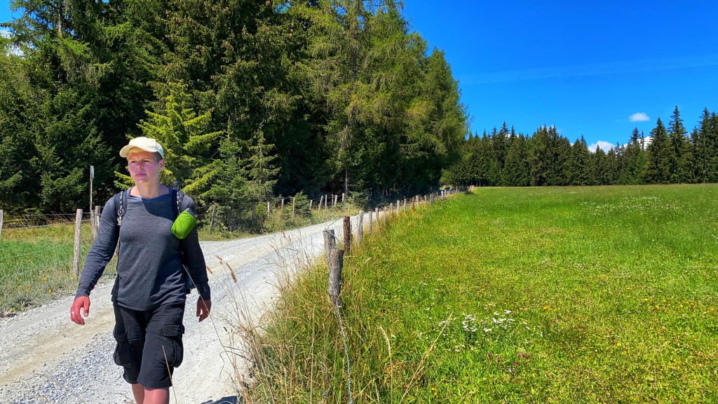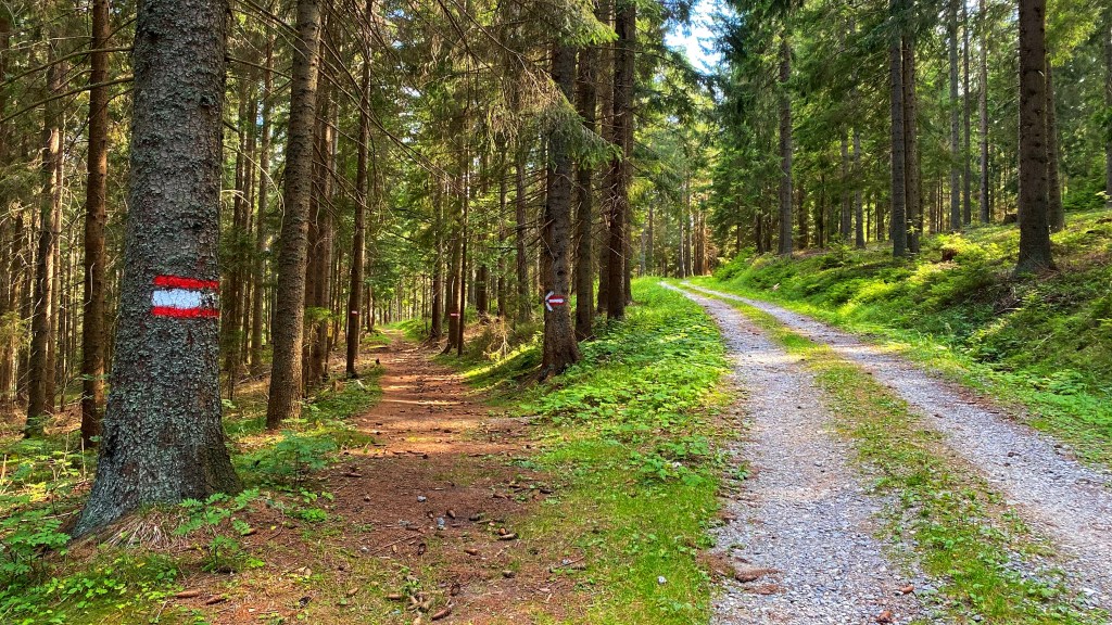 Ich spaziere weiter, jetzt ein Stück auf der Schotterstraße, hinab in Richtung Barbarahaus. Den Abstecher in den Luftkurort Pack muss ich nicht machen, da ich dort nicht übernachten möchte.