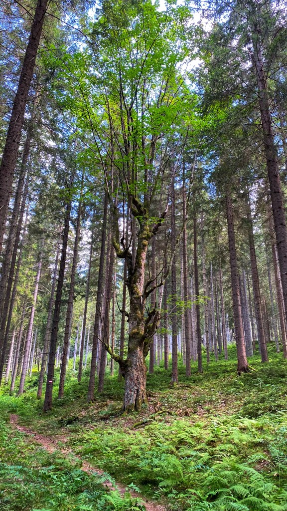 Ich habe viel Zeit, da ich heute nur noch ein paar Kilometer bis zur Hebalm laufen möchte und die Zeit nutze ich, um auf dem folgenden, wieder sehr schönen Waldpfad, reichlich Himbeeren zu pflücken.