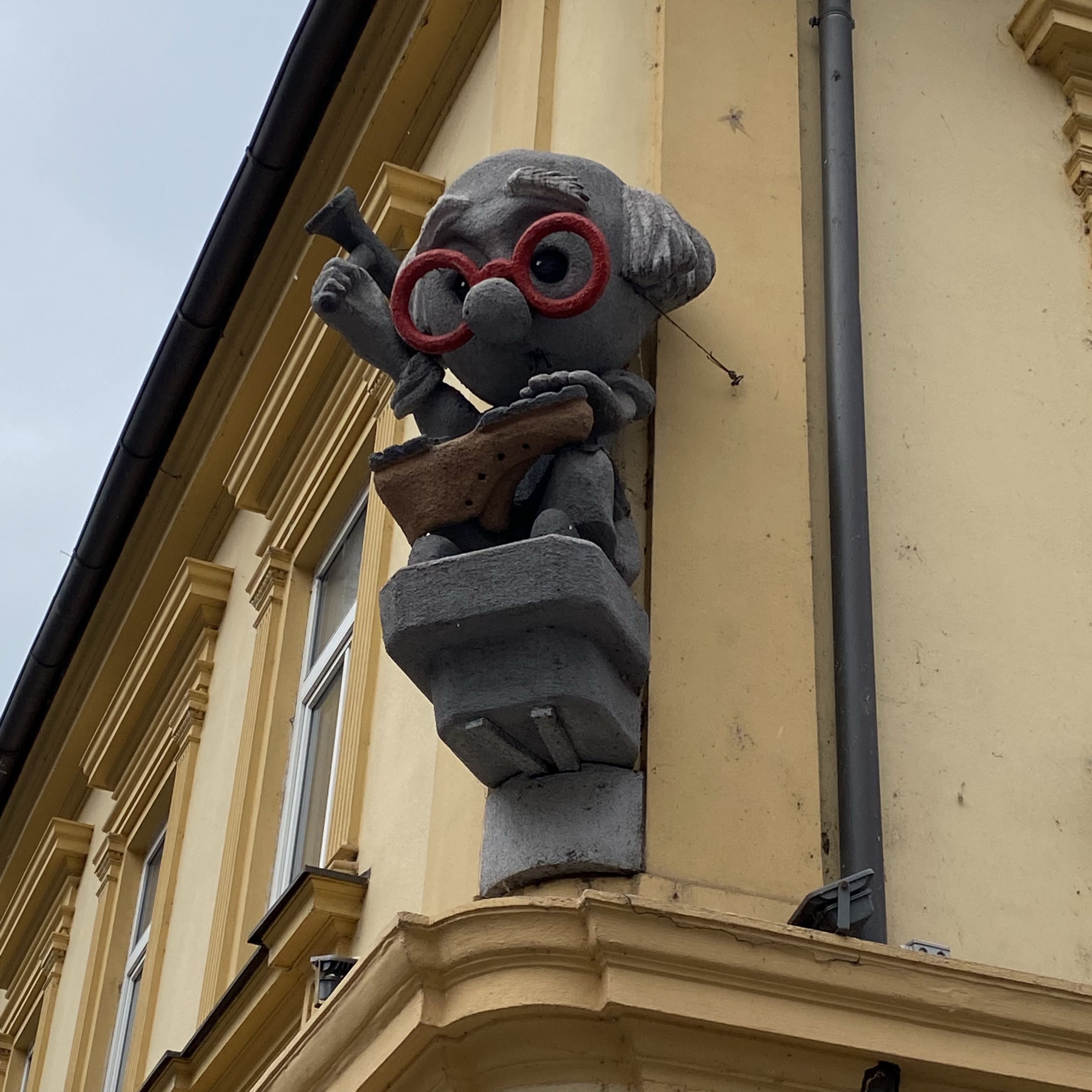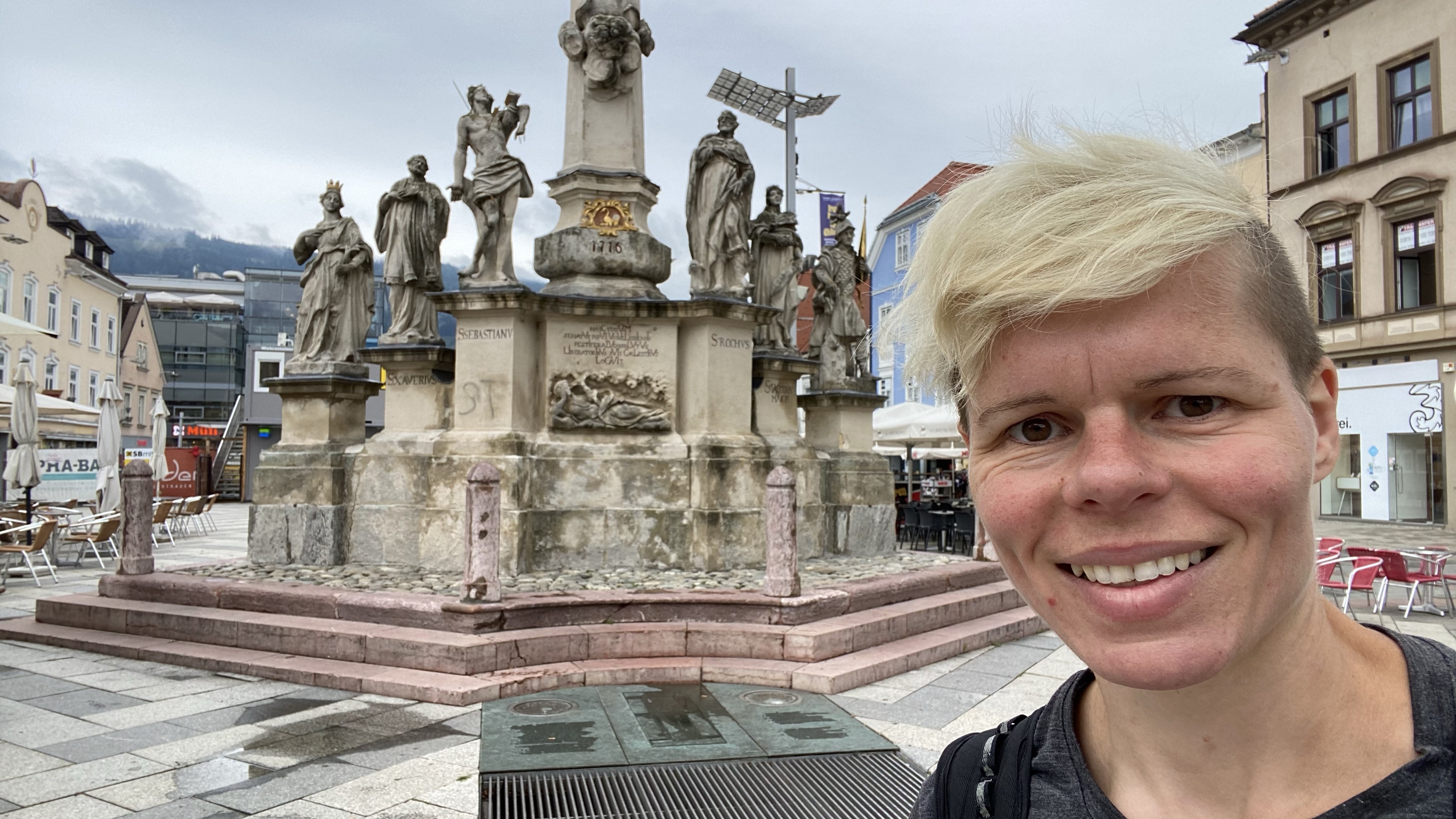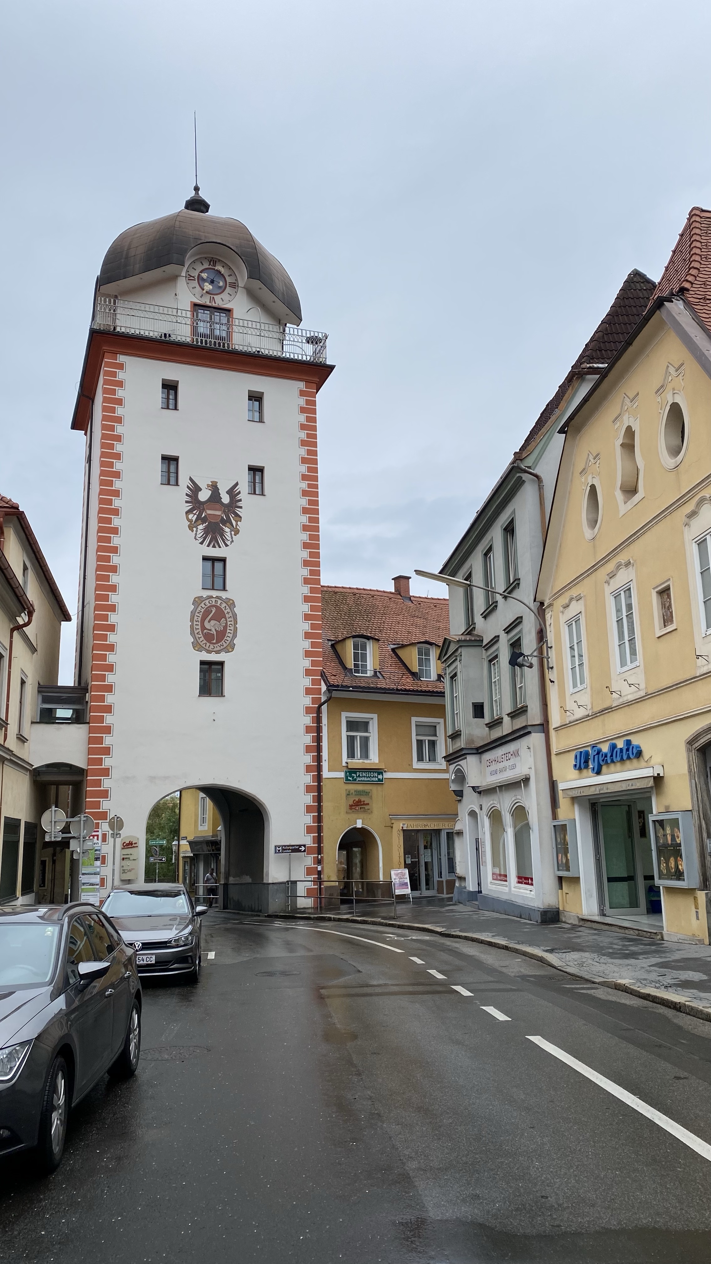 Die Altstadt von Leoben ist aber typisch schön, auch wenn der Charme der stark verzierten Häuser jetzt bei dem trüben Wetter nicht ganz so hervorsticht.