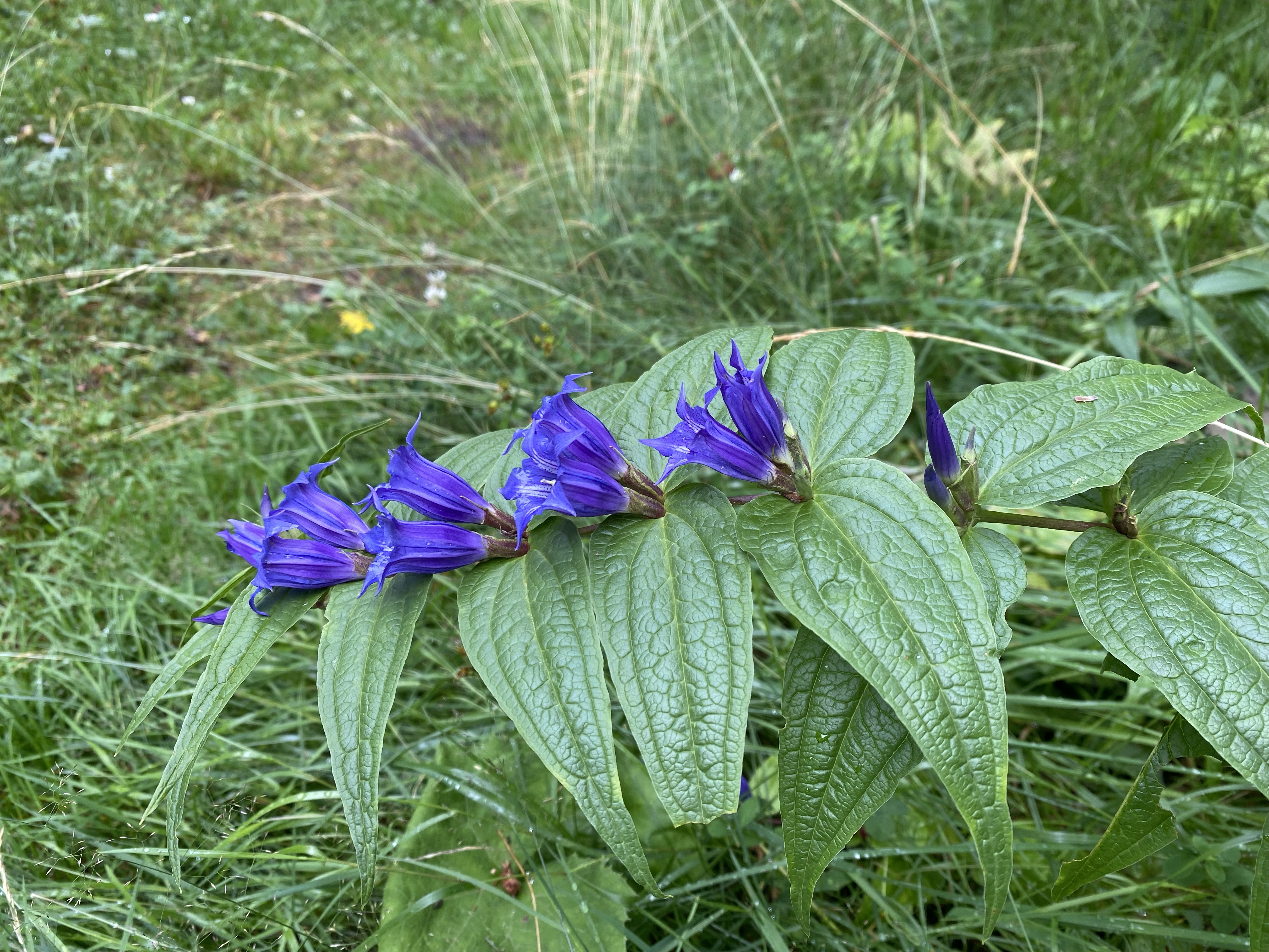 Regnen tut es nicht mehr, der Weg auf dem ersten steilen Stück ist aber wieder so zugewachsen und reichhaltig mit Brennnesseln bestückt, dass ich nicht nur den gesamten Tag über nasse Schuhe und Füße habe, sondern immer wieder auch ein nettes Brizzeln an den Beinen abbekomme.