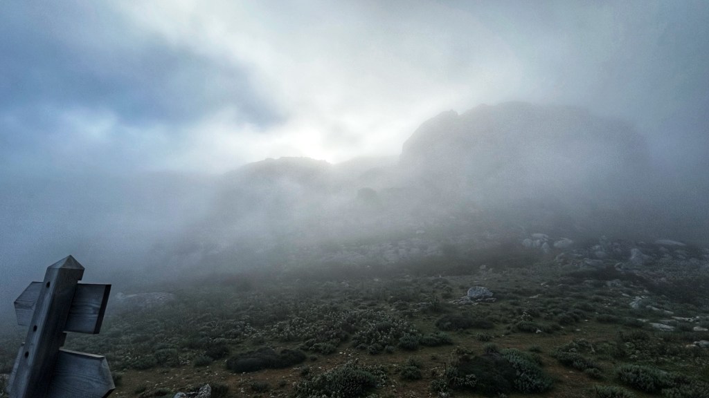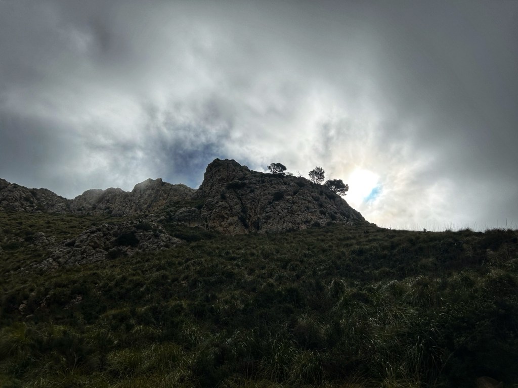 Dort komme ich dann auch (erst) zu dem möglichen Abzweig auf den Mola de s‘Esclop und bin froh, dass das Wetter mir einen guten Grund liefert, nicht DA HOCH zu müssen…