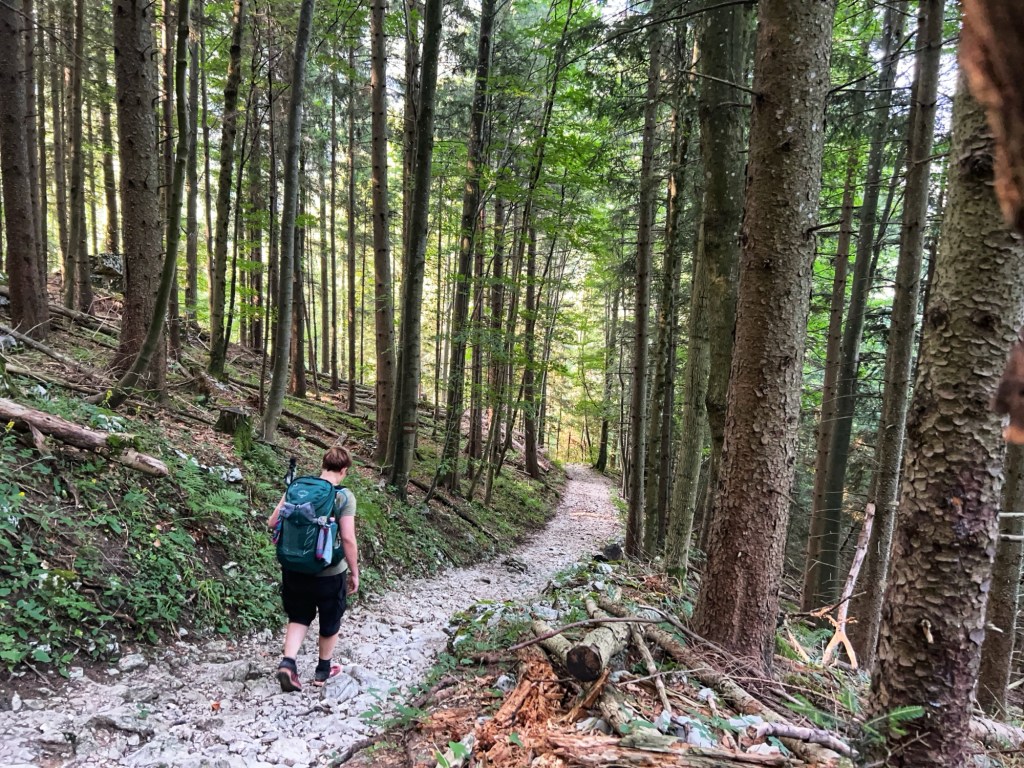 Auf den ca. 4,5 Kilometern kommen mir super viele Wanderinnen und Wanderer entgegen – kein Wunder, ist das doch wirklich eine schöne, klassische Strecke – immer am Bach entlang, durch den Wald auf steilen, schmalen Wegen.