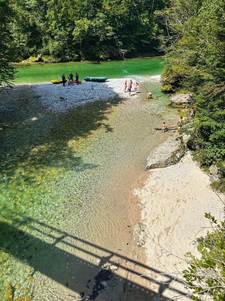 Oben auf der Brücke bleibe ich dann aber stehen und kann meinen Blick nicht von dem türkisblauen Wasser abwenden. Es gibt sogar Sandstrand und kleine Badestellen im Wasser, die einfach perfekt zum Baden und Saubermachen sind…