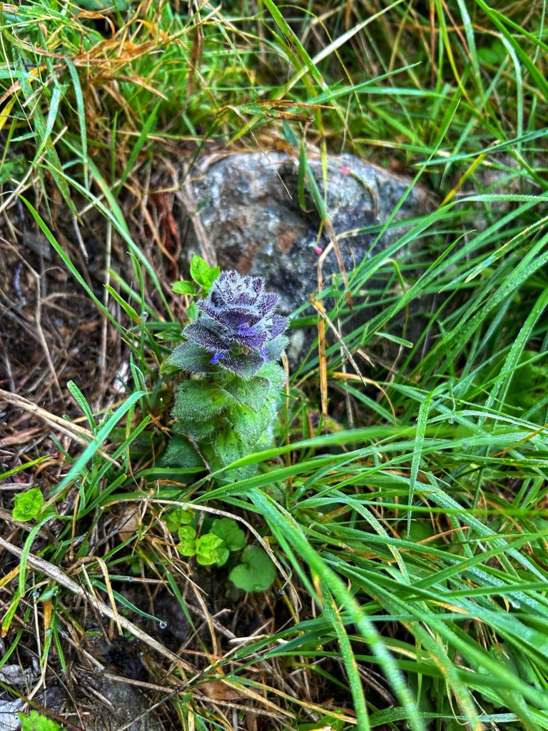 Ich kam aber auch ohne hinunter und schlängelte mich anderthalb Stunden durch nasses Gras und über erstaunlich hohe Felsformationen hinab ins Tal.