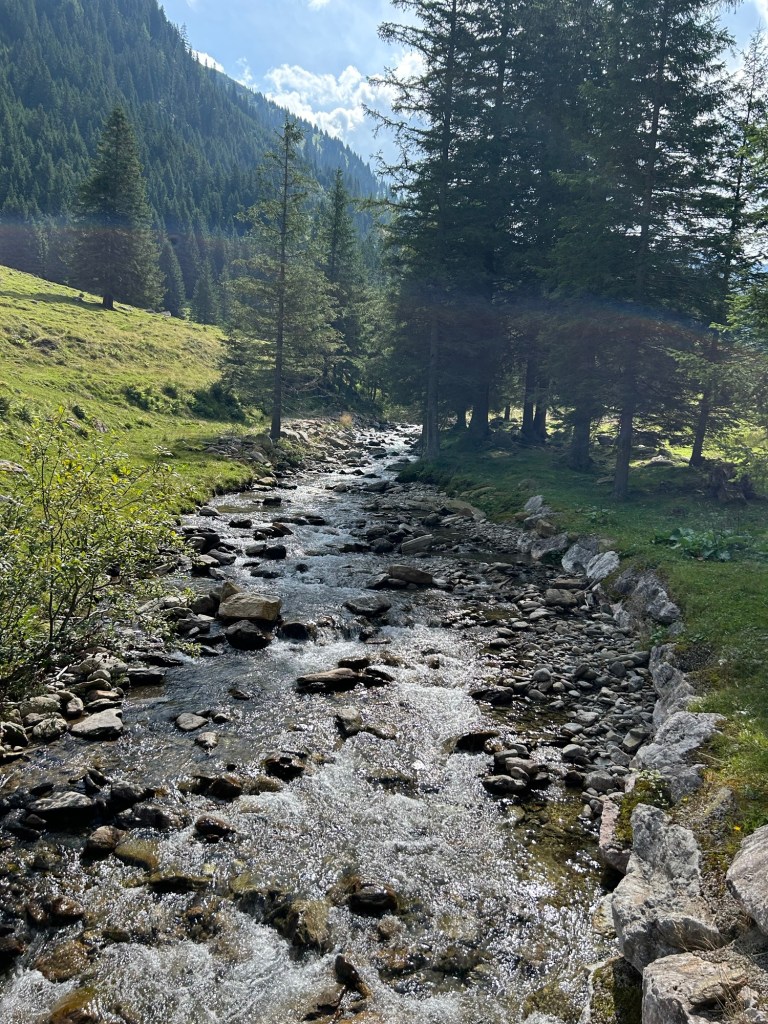 Gegen 16:30 Uhr erreichte ich die Hölzlerhütte, füllte mein Wasser auf und machte mich auf den jetzt ebenen Weiterweg.
