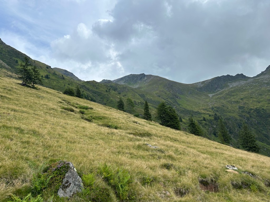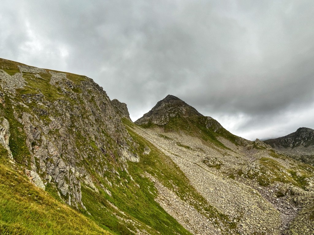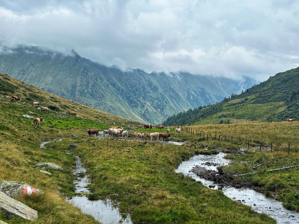 Während ich entspannt und glücklich über die Weide wandere, ziehen sich die Wolken wie angesagt langsam zusammen. Es soll aber zunächst trocken bleiben und ich hoffe das Beste für den Anstieg.