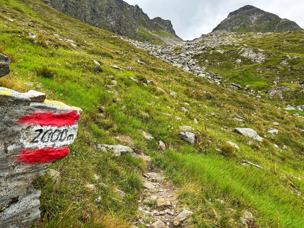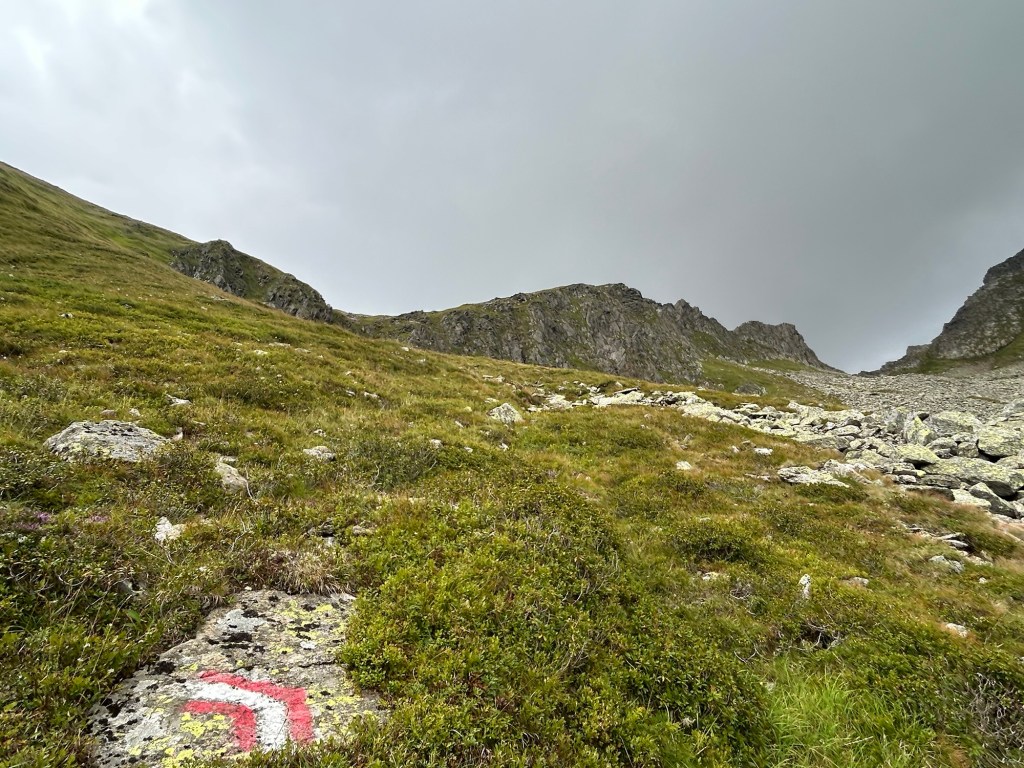 Die hatte ich seit einigen Touren nicht mehr mitgenommen, weil ich sie zuvor zu selten im Einsatz hatte. Das waren aber noch Mittelgebirgswanderungen gewesen, wo ich sie tatsächlich nicht brauchte. Hier in den Alpen bei den steilen Abstiegen wären Stöcke durchaus hilfreich.