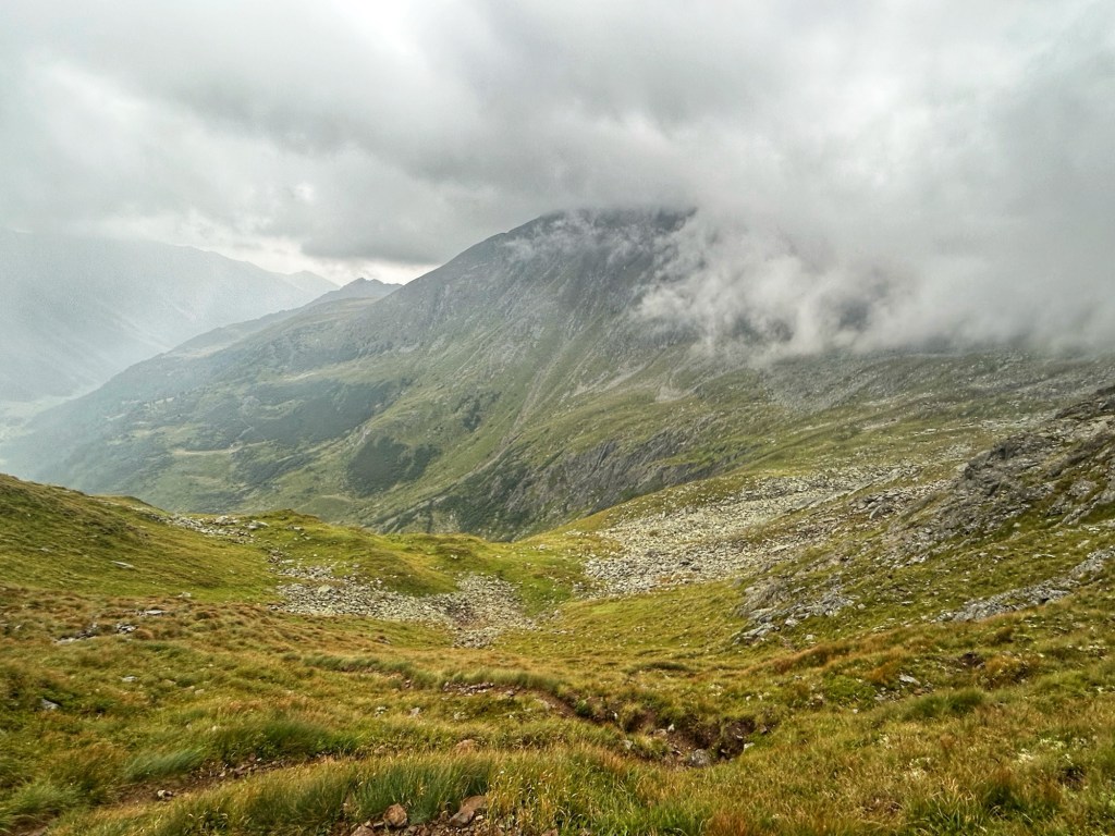 Die Wolken wurden jetzt immer dunkler und ca. 10 Minuten vor dem Sattel fing es dann an zu regnen.